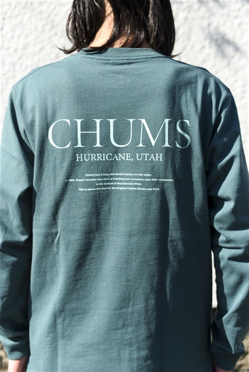 相良刺繍の立体的なカモ柄CHUMSロゴが特徴的な新作ロンT!