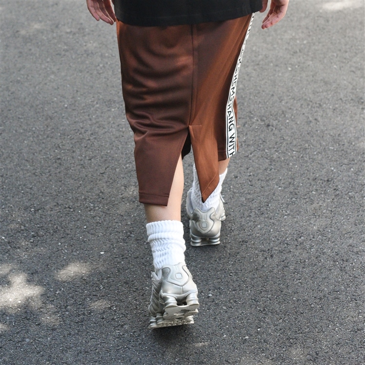 足首が見える丈感で、すっきりとしたシルエットに✨