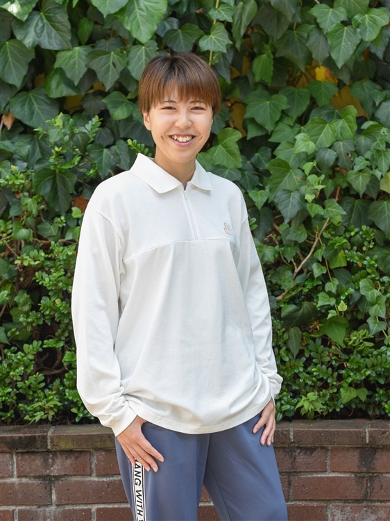 もえ:グレージュ/ホワイト・WM/Oサイズ着用