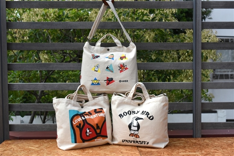 CHUMS定番の“Booby Canvas Shoulder”をベースに、かせきさいだぁ氏のデザインをあしらったキャンバスショルダーバッグ。