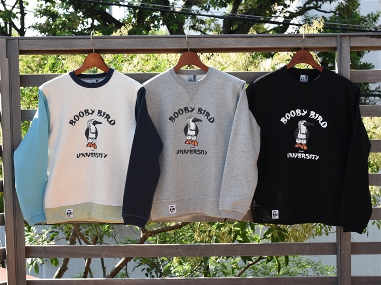 “Black”には「Pattern」、“Navy”には「アラカルト2」のモチーフ、“Beige”には「BOOBY BIRD UNIVERSITY」のカレッジ風ロゴがデザインされています😍