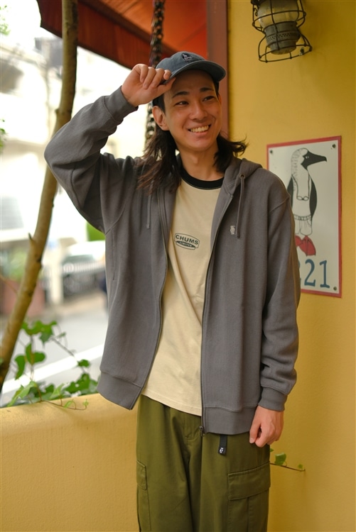 着脱しやすく、少し肌寒い時の羽織りとしても優秀なジップパーカー。