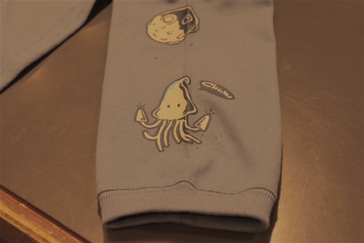 袖に宇宙のプリントがある