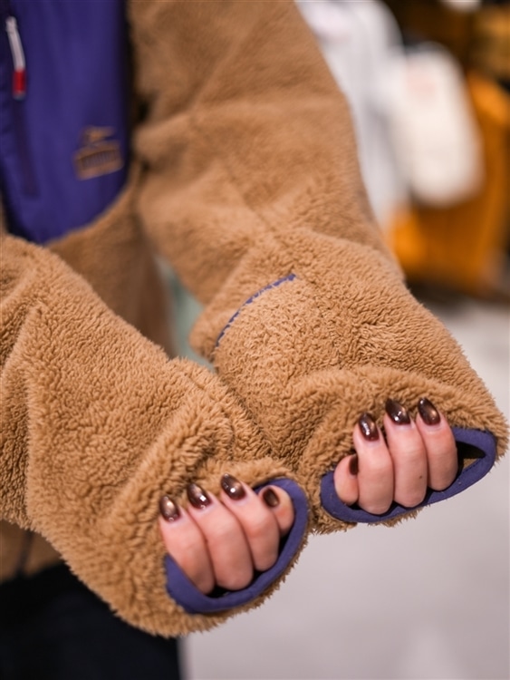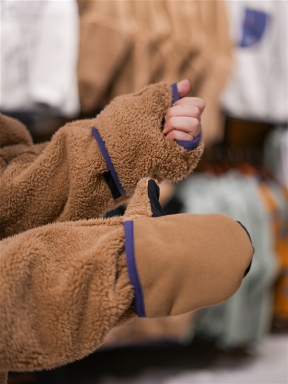 ですが、こちらのフリースは防風、袖口がミトン型の手袋に変身!!
