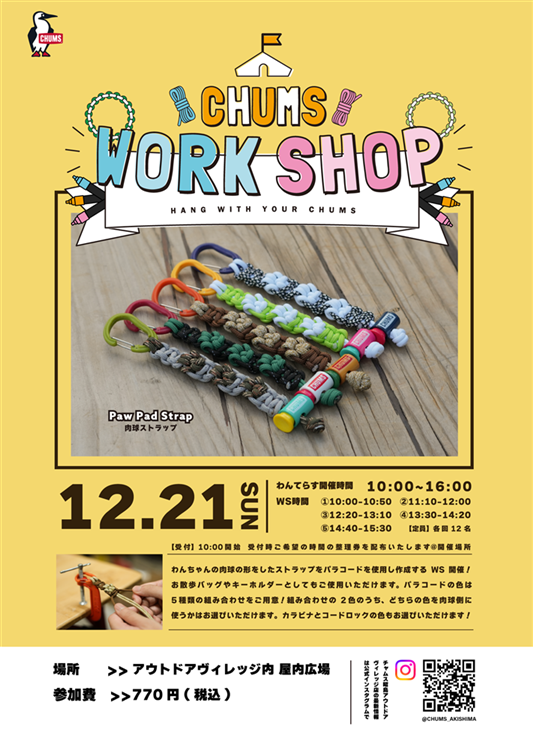 CHUMS昭島店は肉球ストラップのワークショップで参加させていただきます♪