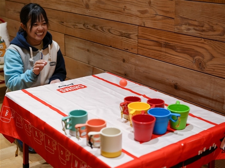 最後のカップにボールを入れたプレイヤーの勝ち!