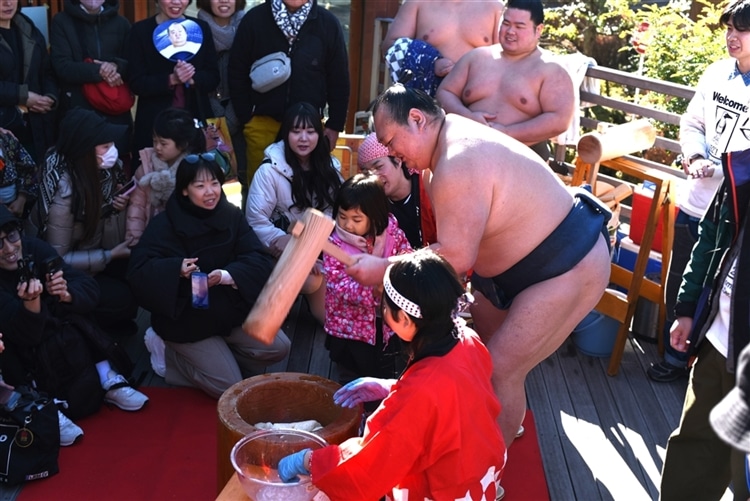 今年も、毎年お世話になっている伊勢ケ濱部屋の桐山親方にお餅をついていただきました!!