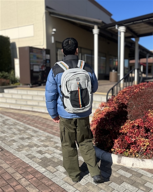 容量も25Lと通学通勤用には、ちょうど良いサイズ感!カラーもグレイに少しCHUMSっぽいレインボー柄!🌈