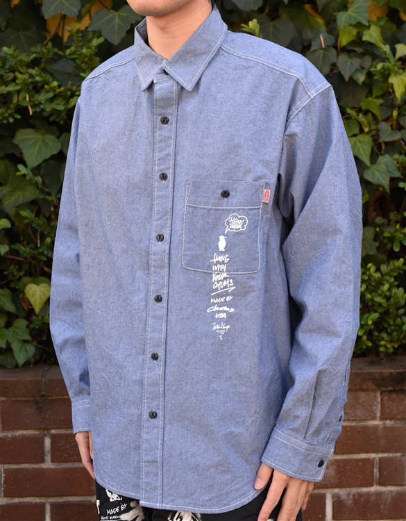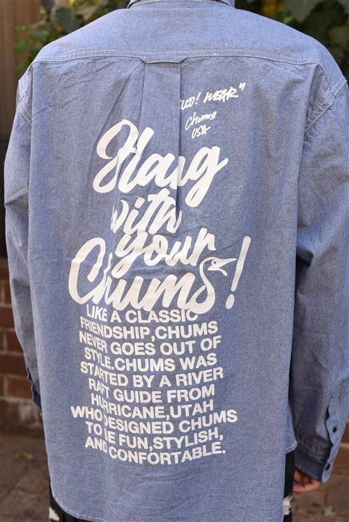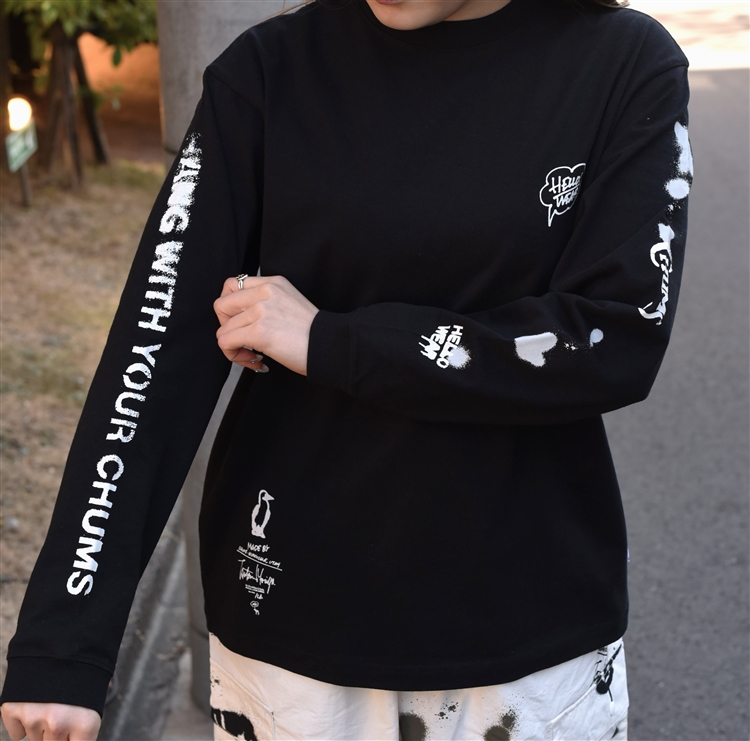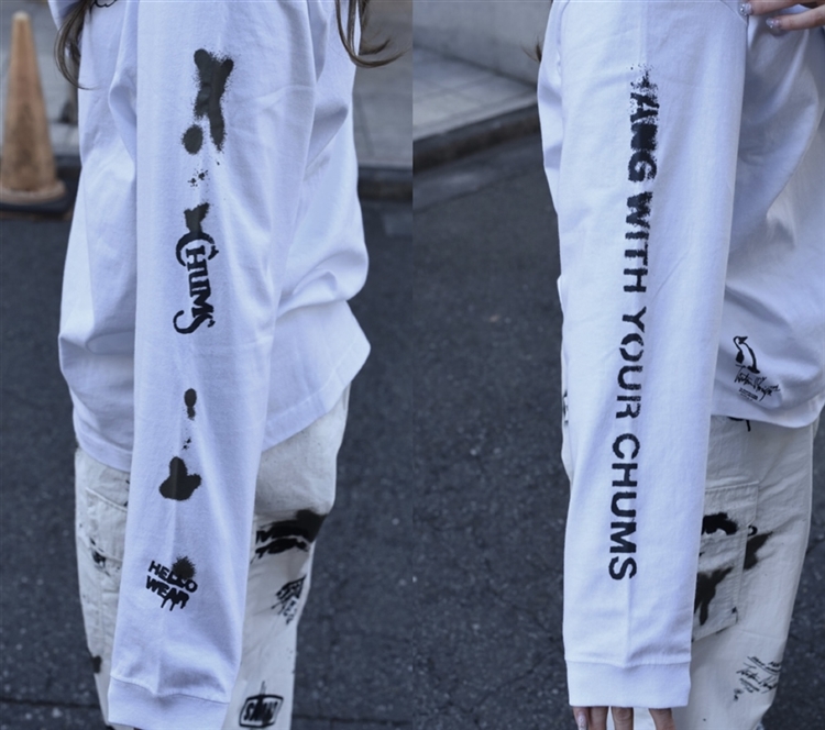右袖には「HANG WITH YOUR CHUMS!」
