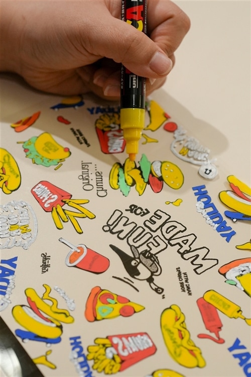 見た目も心もワクワクさせてくれるファーストフードで表現しした総柄🎨