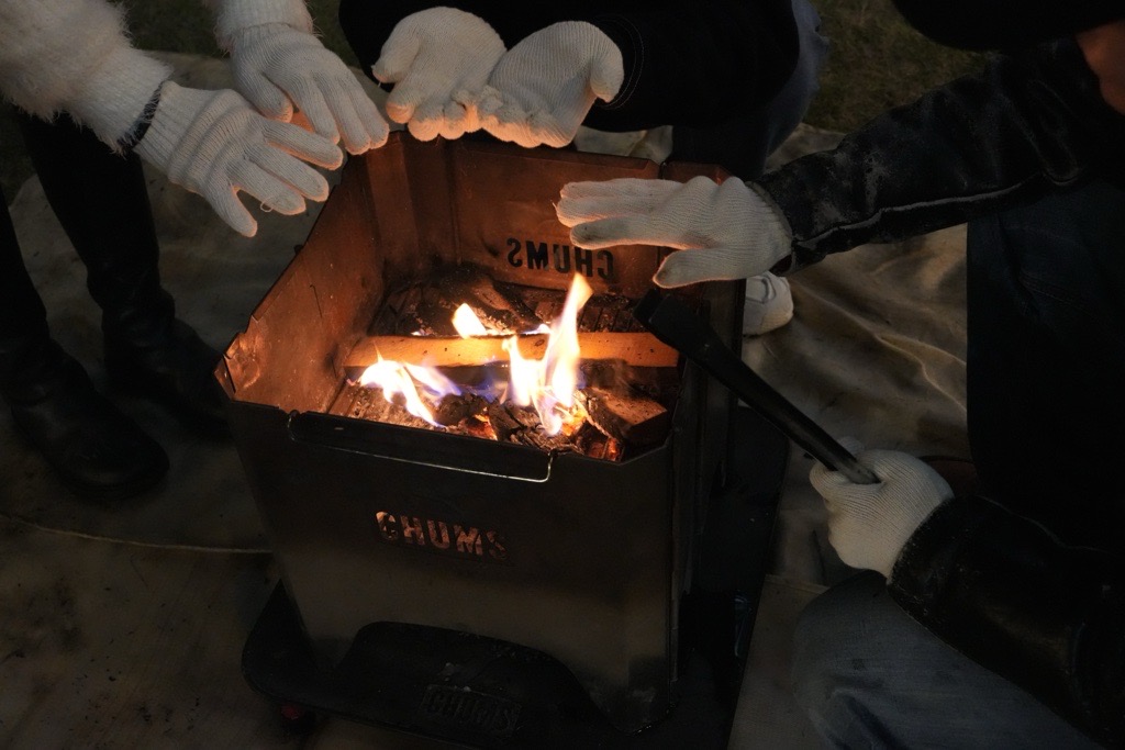 • 火の粉で衣服に穴が開いてしまう可能性がございます。熱に強い綿素材のアウター着用をおすすめいたします。