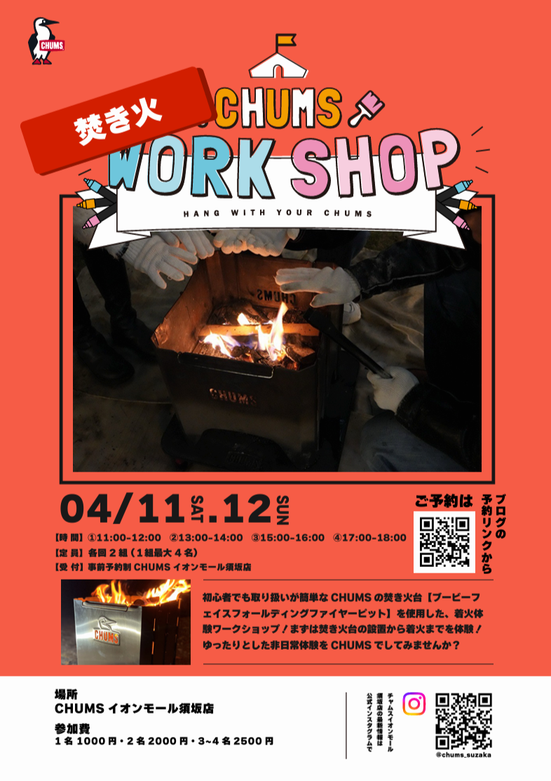 薪のくべ方、火の付け方、焚火の楽しみ方まで1からマスターできちゃうワークショップです!