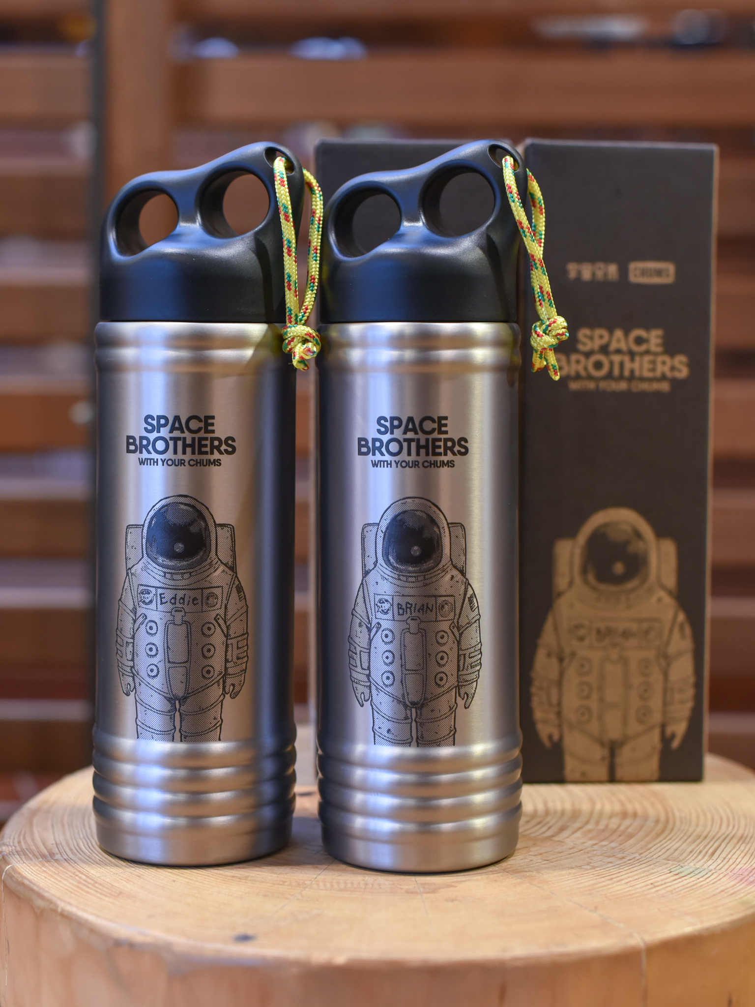 宇宙兄弟の名シーンをあしらった、限定コラボボトルの2本セット。