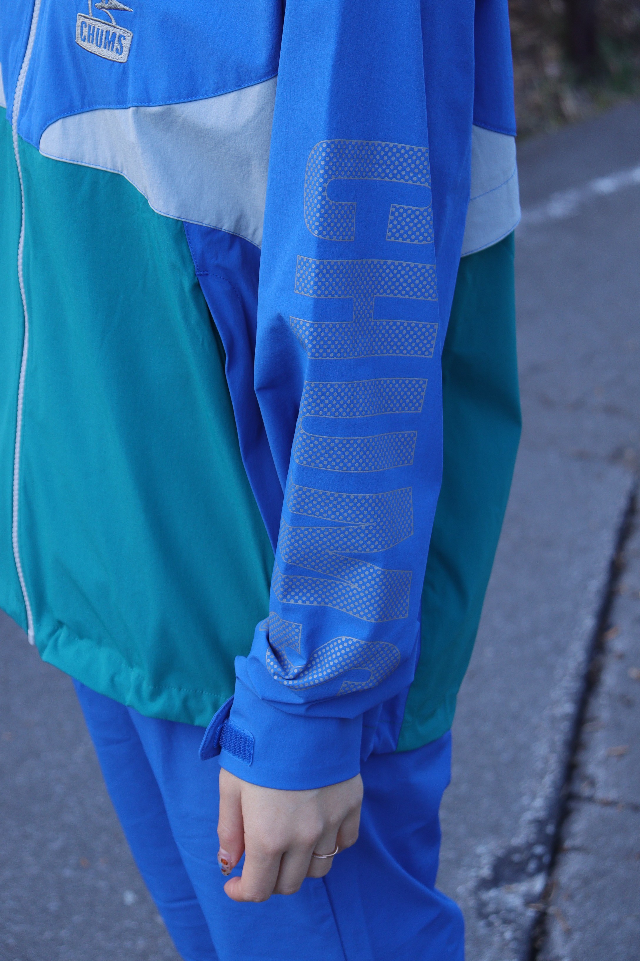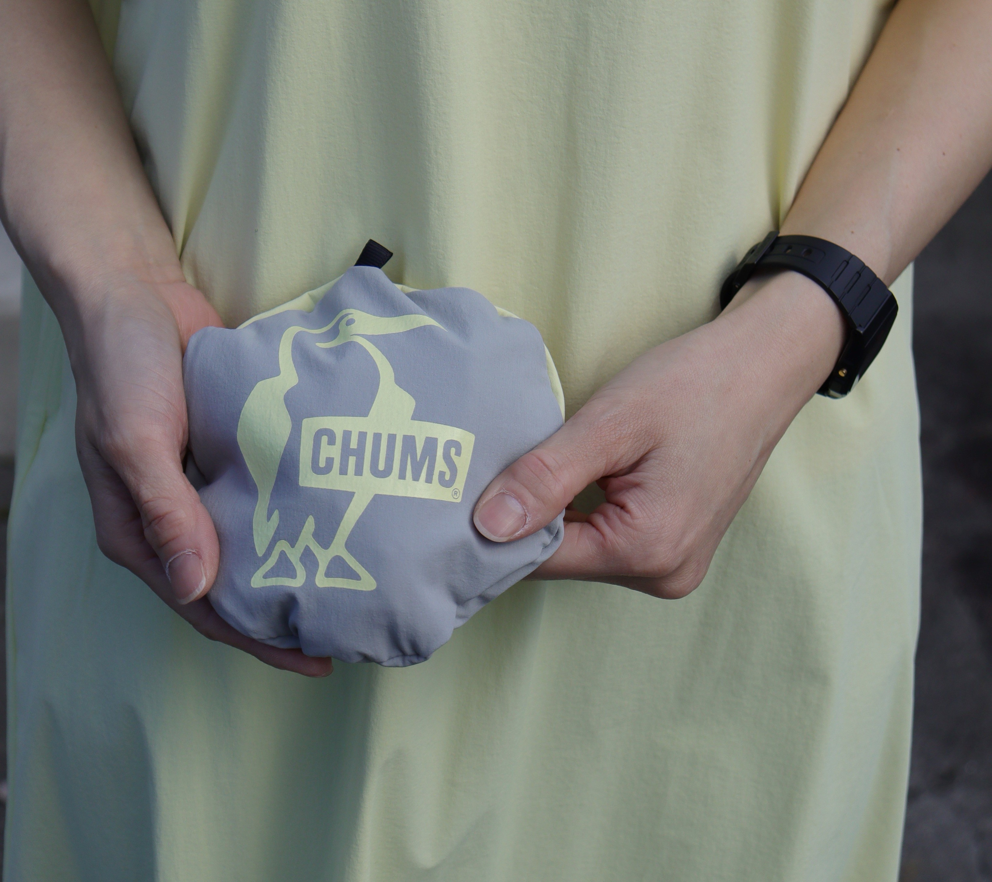 腕にもドット調のCHUMSの文字が!カッコイイ✨