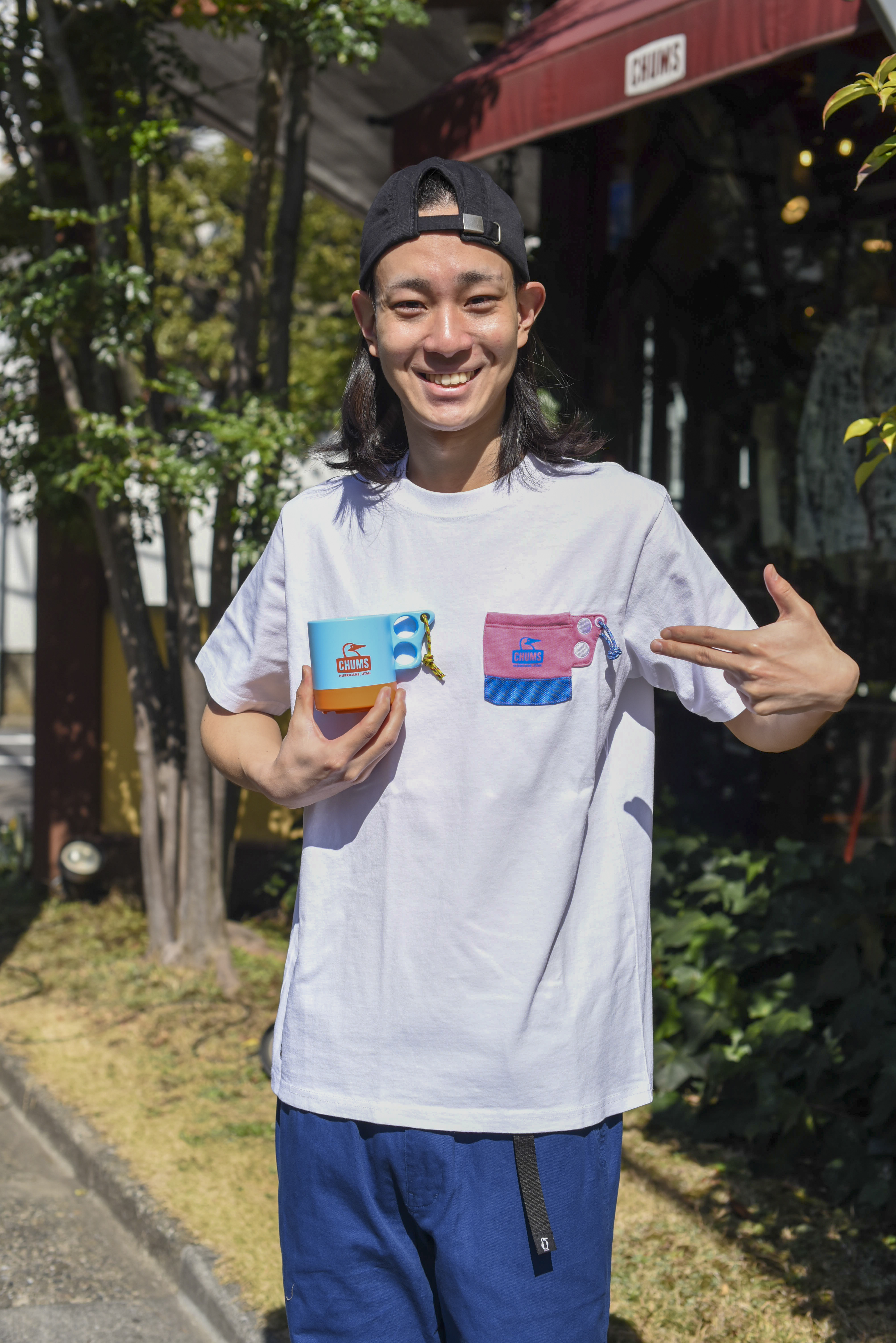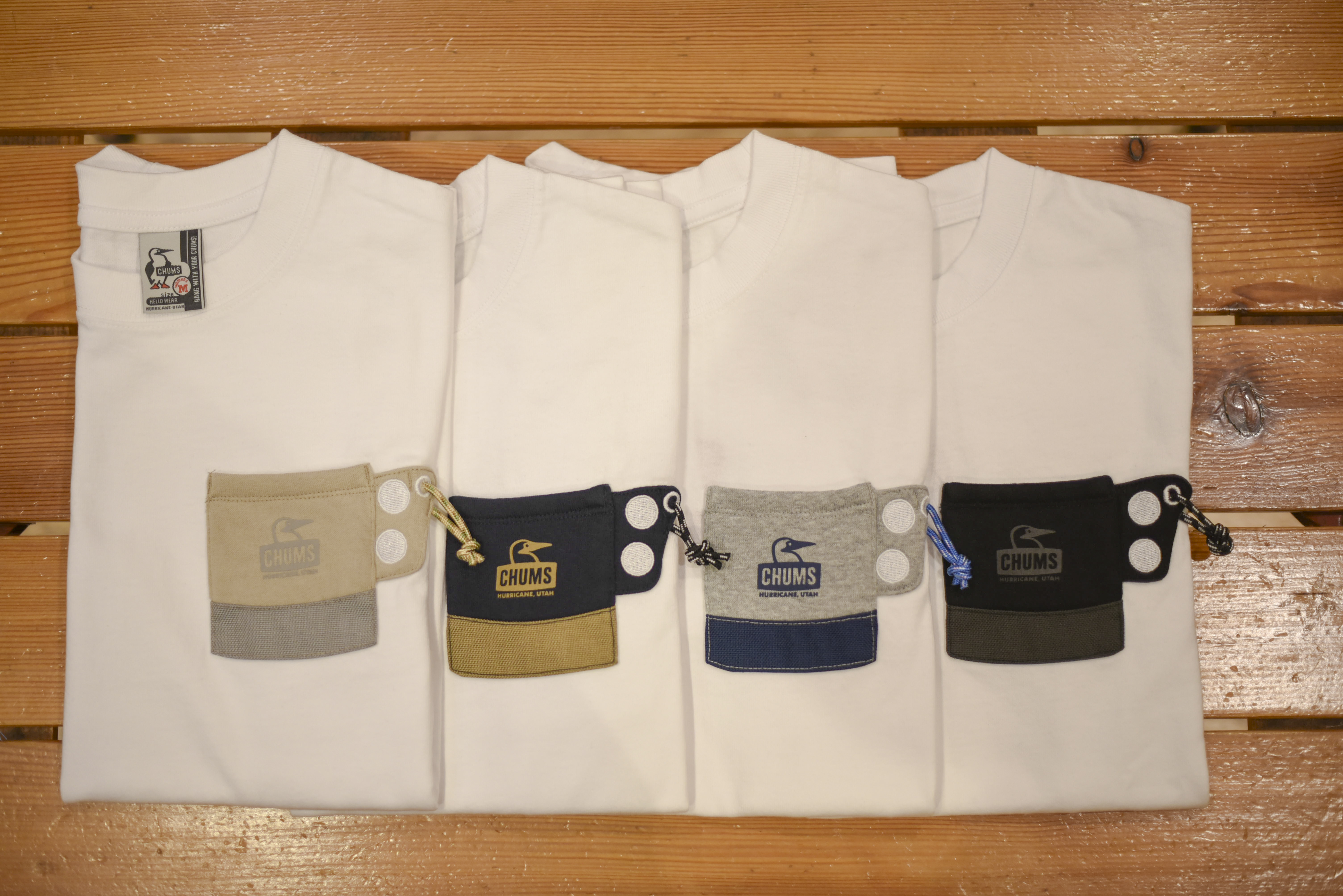 チャムスの人気グッズ「Camper Mug Cup」をTシャツのポケットとしてデザインした一着!