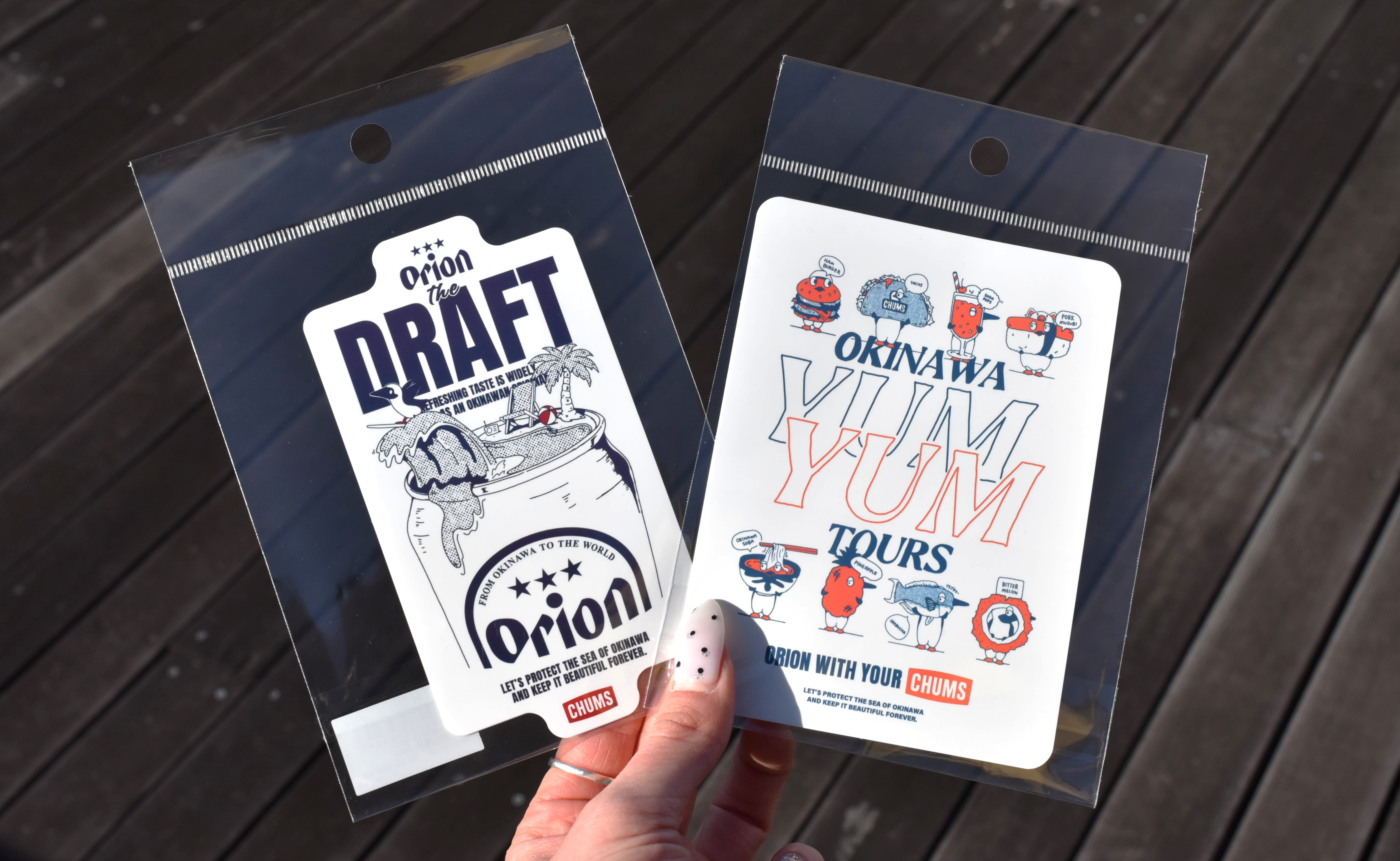 ORION × CHUMS の限定コラボグッズとともに、