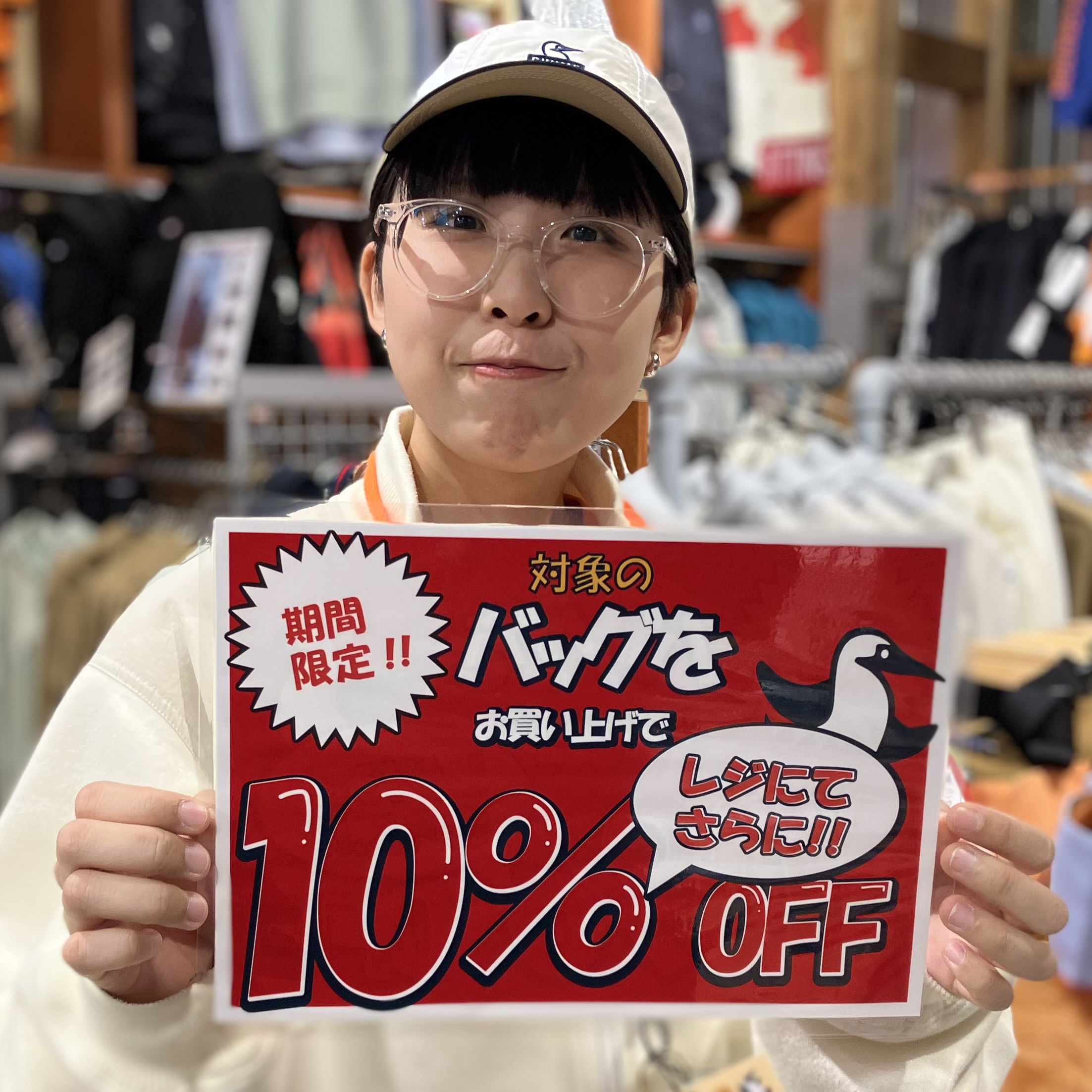 対象のバッグがレジにてさらに10%オフ!