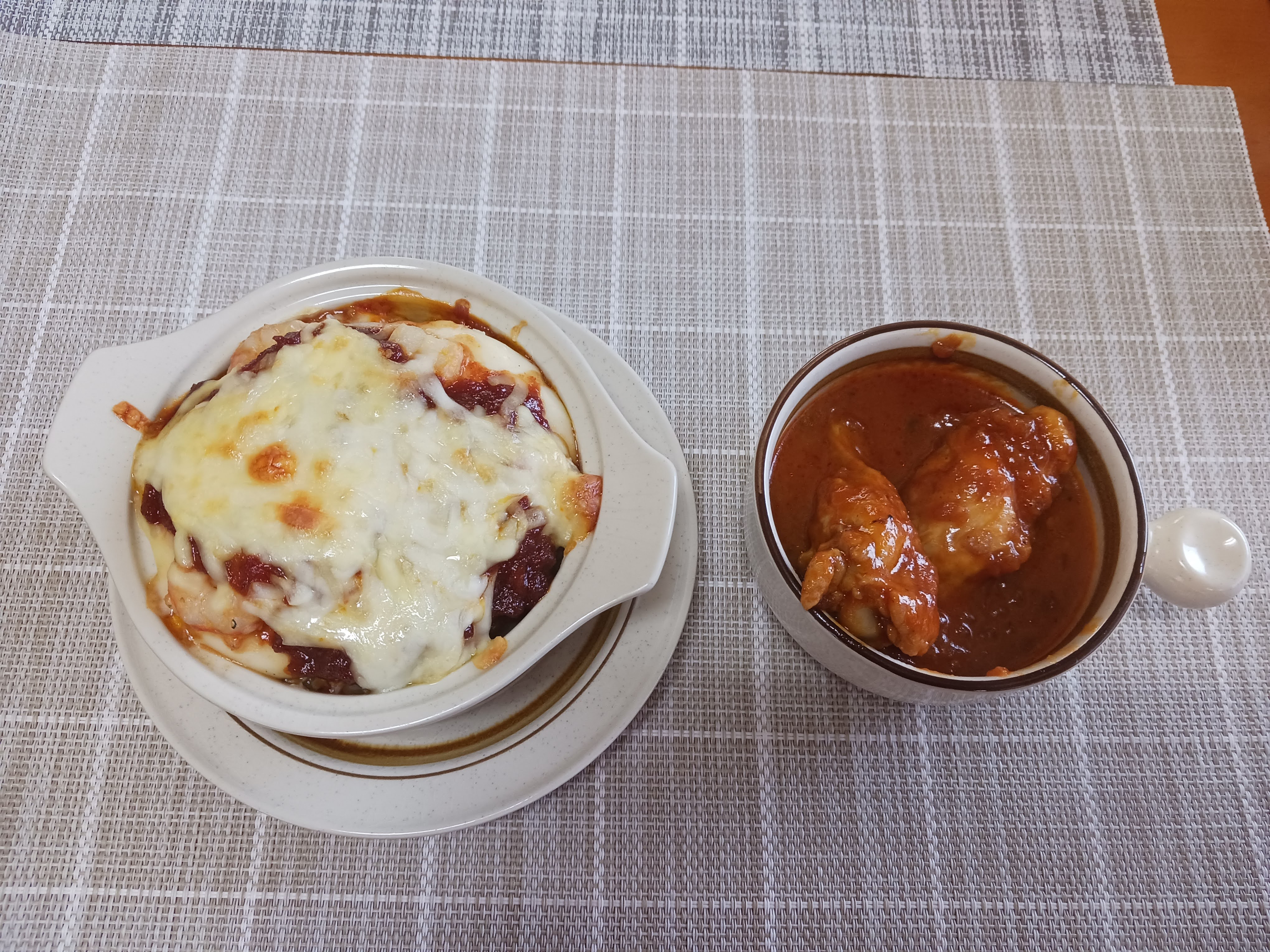 【BBQソースのドリアと手羽元のBBQソース煮】