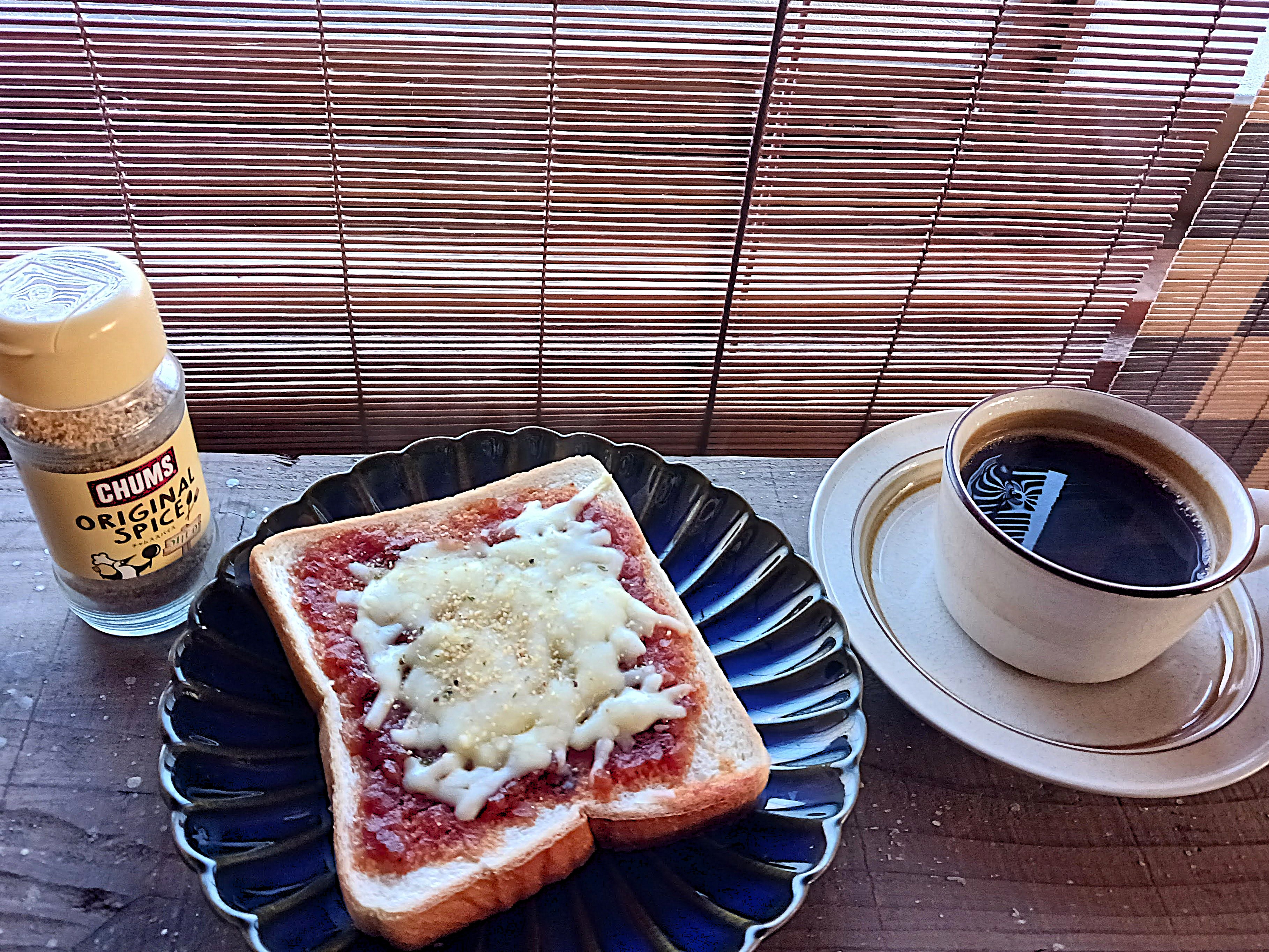 食パンにBBQソースを塗って、ピザ用チーズをかけて焼くだけ🍕
