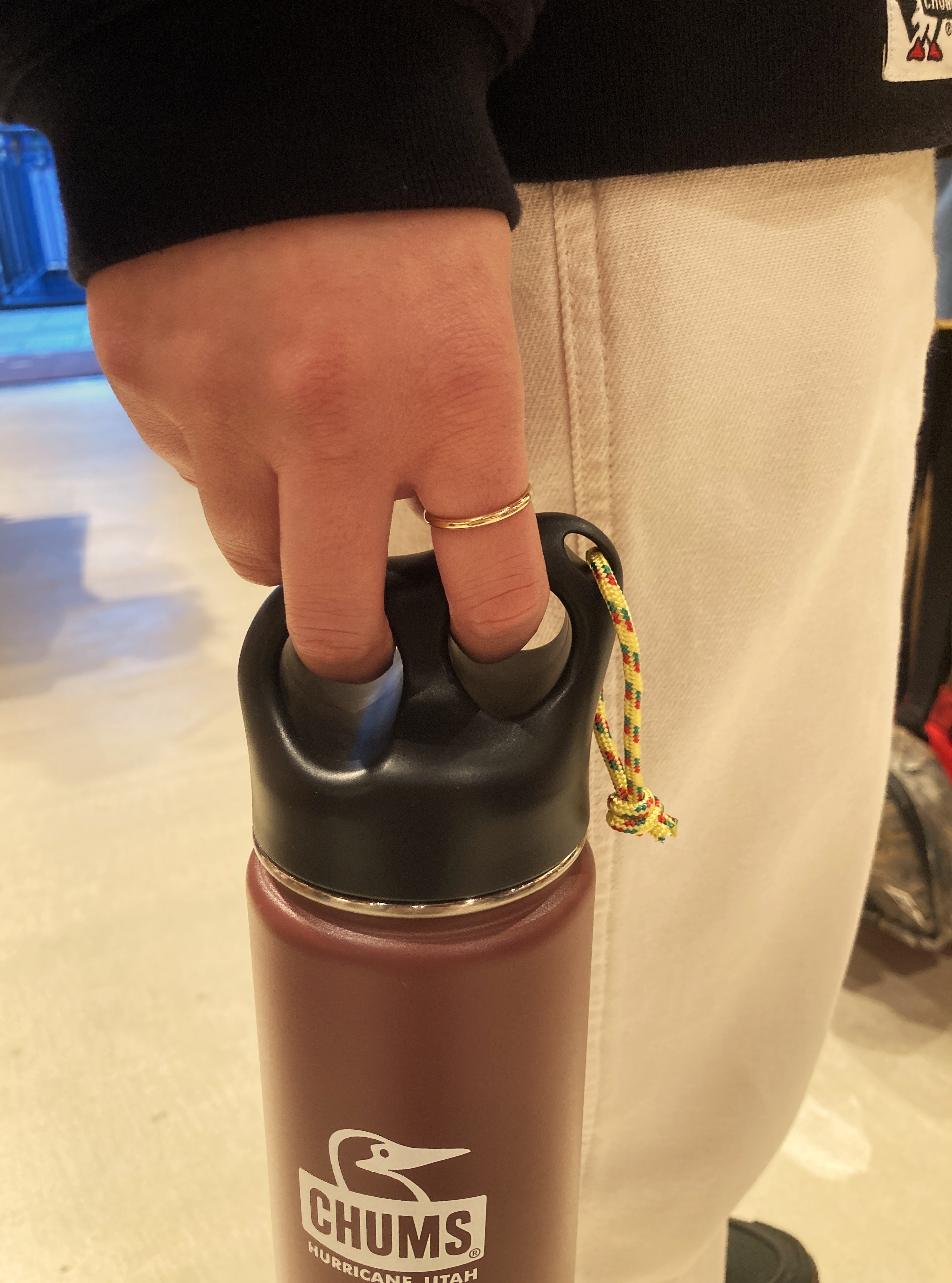 キャップには持ち歩くのに便利な二つ穴付き◎