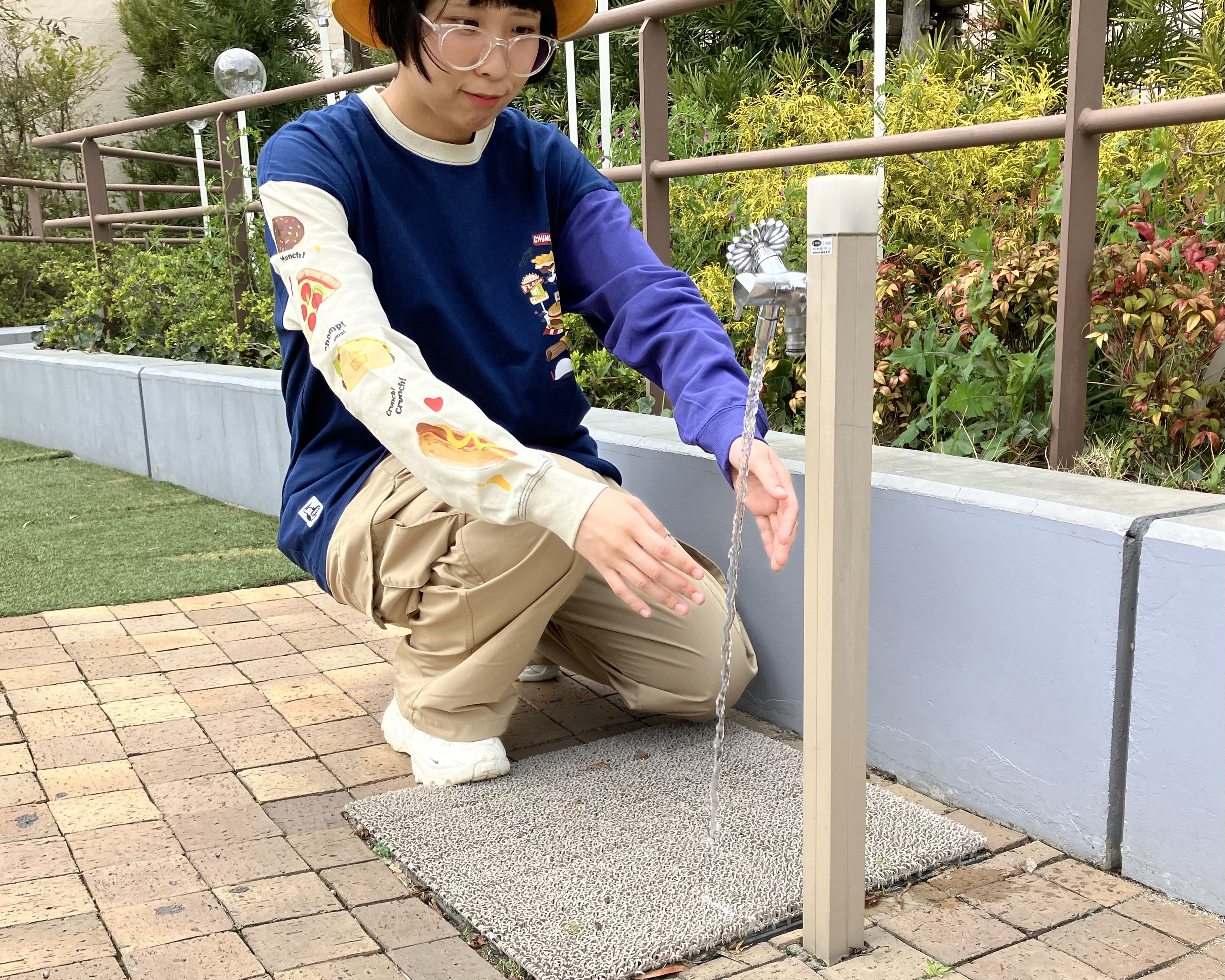 公園でお子さんのおててを洗ってあげるときに跳ねてきた水はささっと乾いちゃう優れもの!!