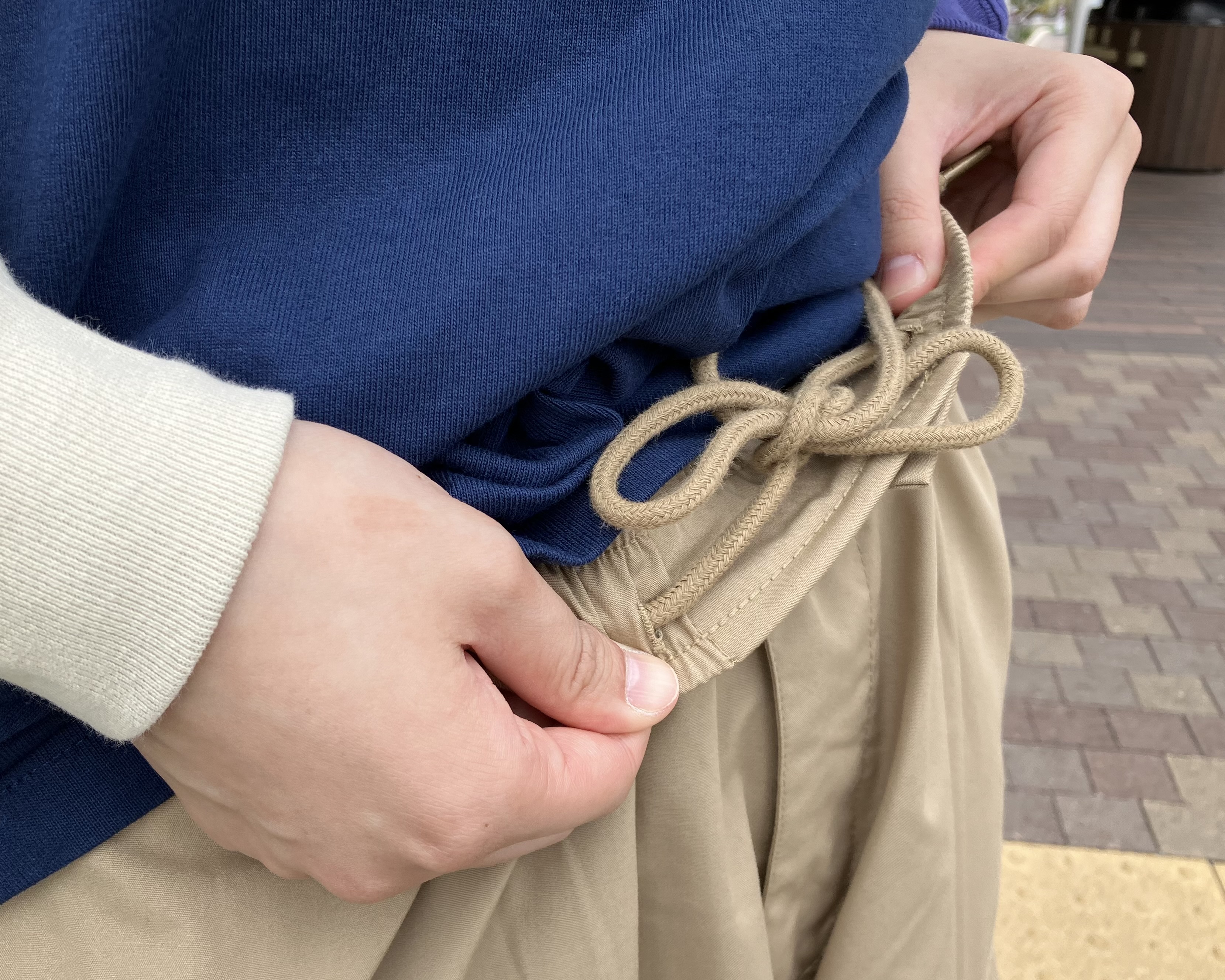 そして!こちらも裾にはドローコードが付いているのでキュッと締めて
