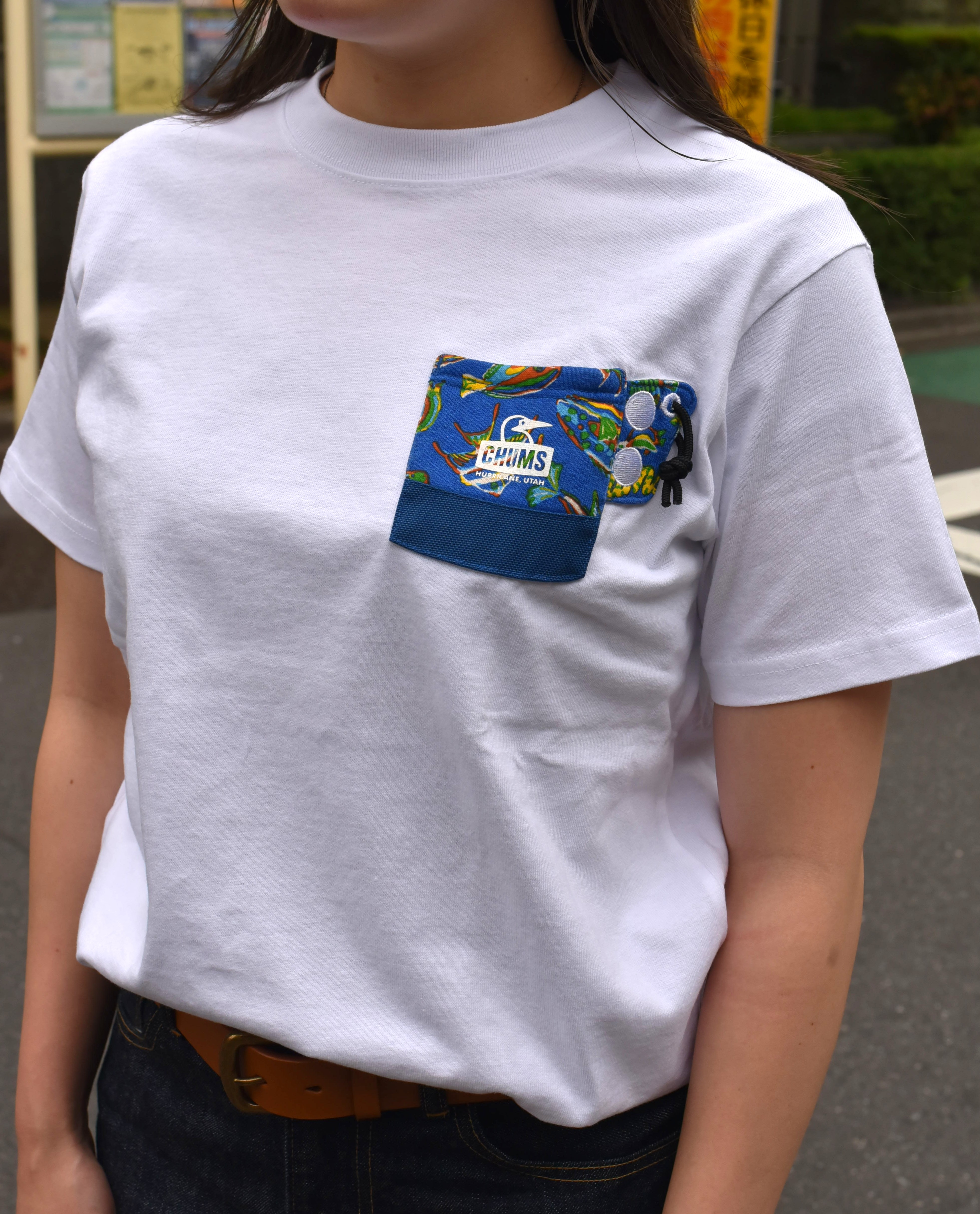 胸ポケットにはCHUMSレッドの刺繍ロゴ、さらに内側には隠れブービーも…👀