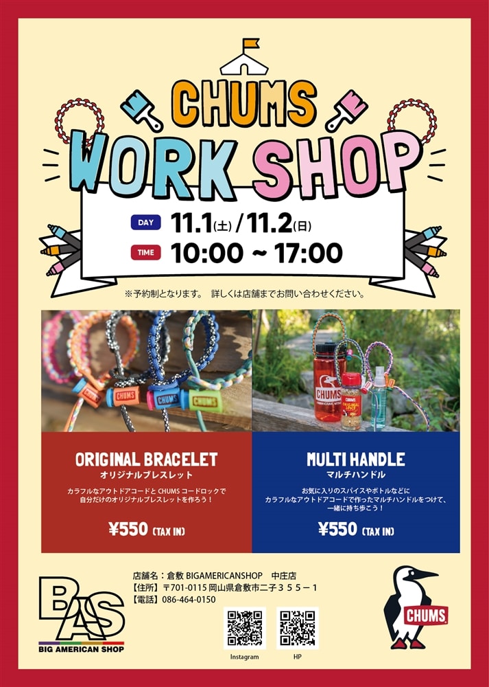 【11/1(土).2(日)】倉敷 BIG AMERICAN SHOP 中庄店 ワークショップ開催!