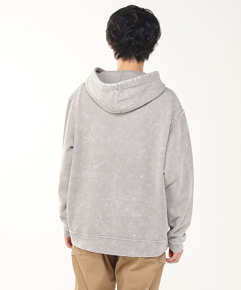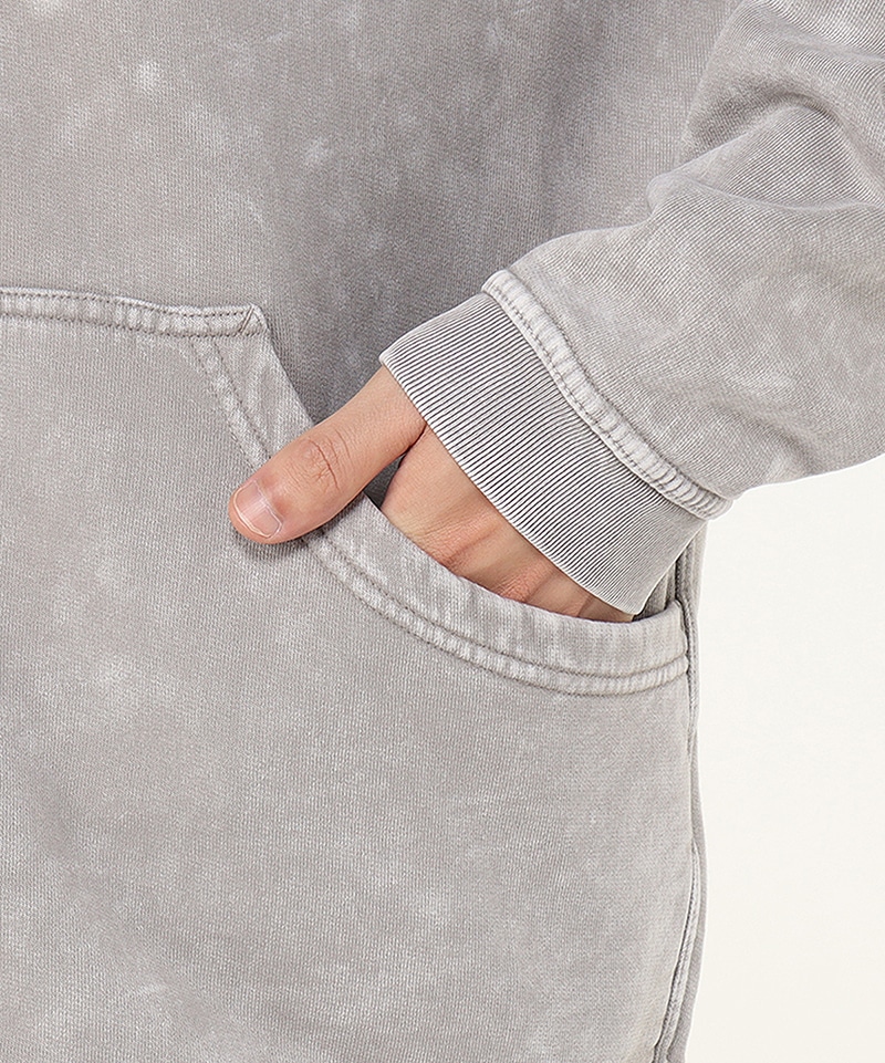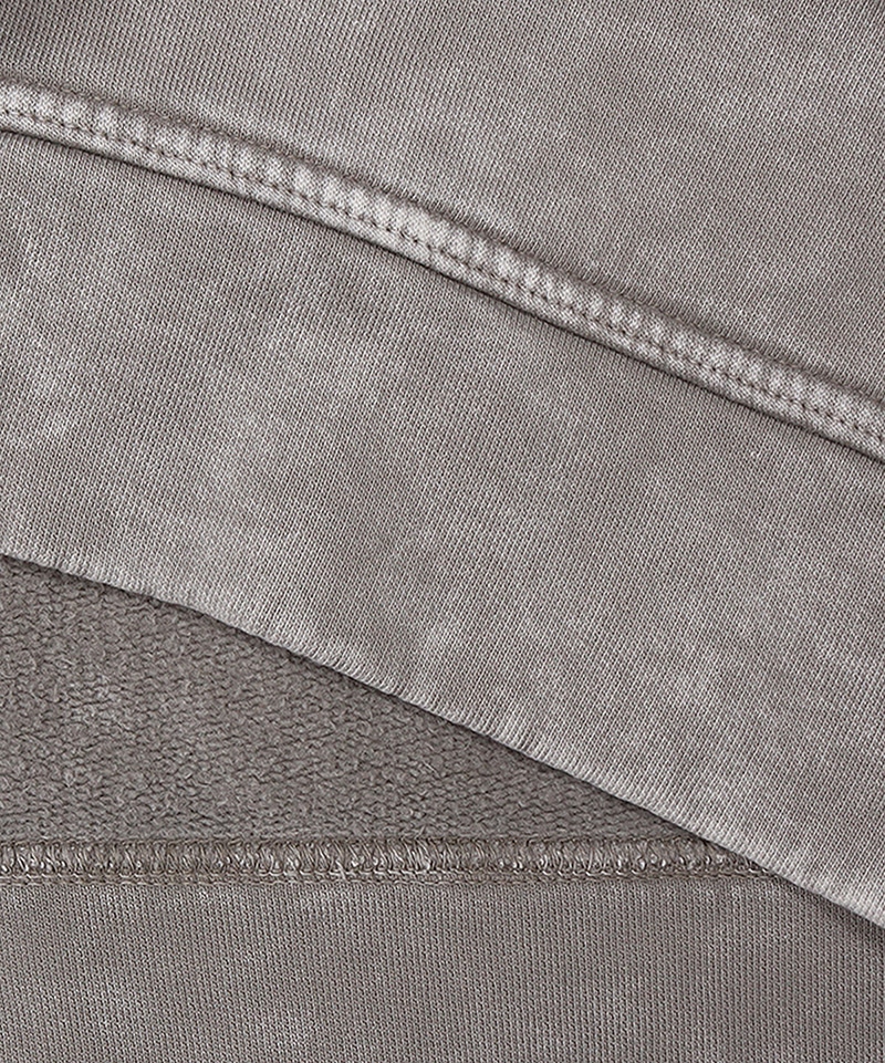 ピグメント加工を施したUSAコットン100%仕立てのスウェットを使用。製品の状態で特殊な顔料で染めて洗いをかけることで、古着のようなフェード感のある風合いを表現。着こんでいくことで自然な色落ちを繰り返し、経年変化を楽しむことができます。
