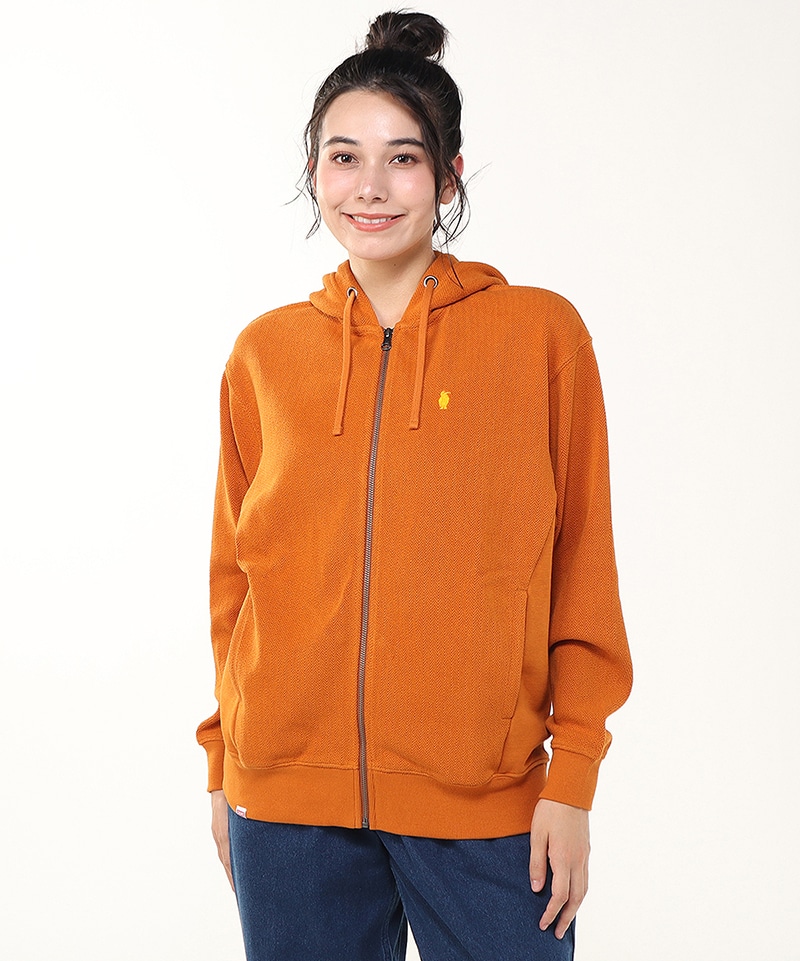 着脱しやすいフルジップ仕様で、両サイドにはポケットを配置。左胸にはブービーシルエット刺繍をあしらい、シンプルながらもさりげないアクセントに。季節の変わり目にはさらっと羽織れて、冬場にはアウターのインナーとしてレイヤードも楽しめる万能アイテムです。