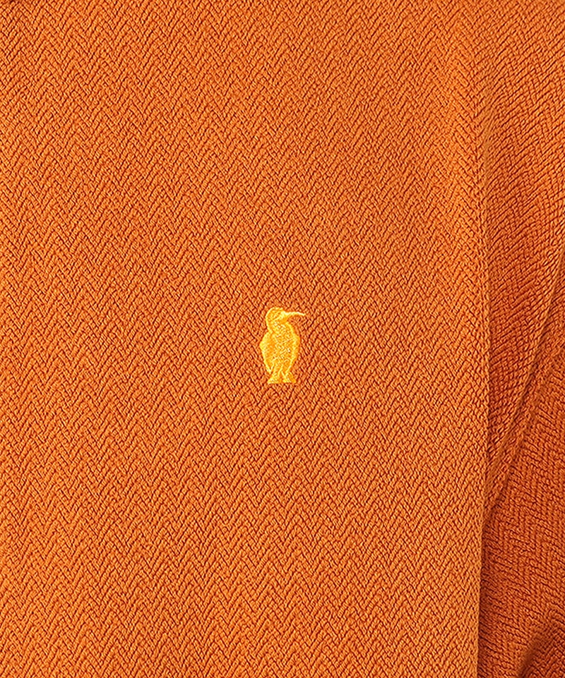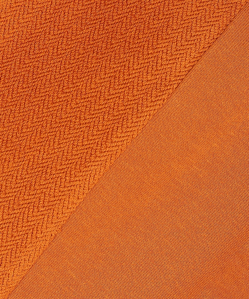 裏毛生地のパイル面にヘリンボーン柄を施したスウェットシリーズ。通常は肌面にくるパイル面をあえて表側に使用することで、あそびゴコロのあるデザインに仕上げました。柄をくっきりと表現するために度詰めで編み立てられており、肉厚でしっかりとした生地感が特徴。柔らかな肌触りと程よい厚みで、シーズンを問わず快適に着用できます。
