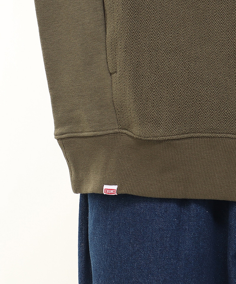 ヘリンボーン柄をCHUMSらしくアレンジした、“Troutbone”シリーズのスウェットプルオーバーパーカー