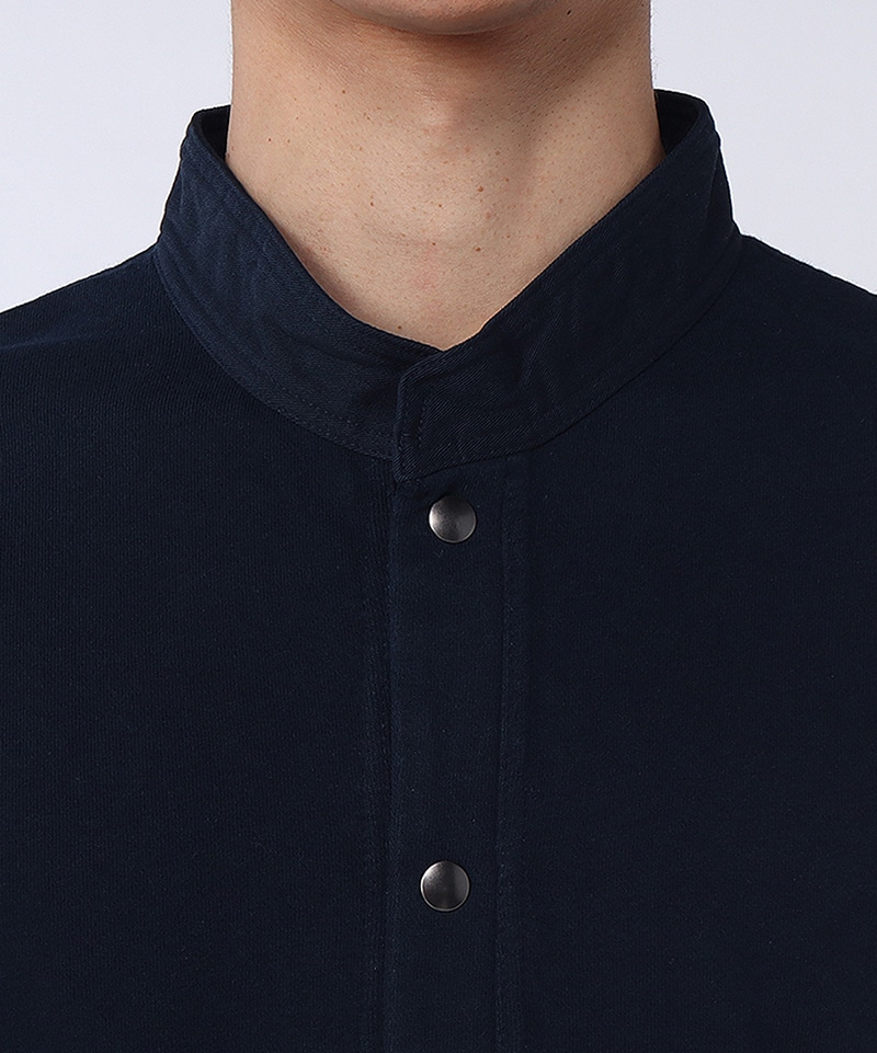 オーバーサイズのボックスシルエットにスタンドカラーが特徴的。前身頃にはポケットを配し、羽織としても、ボタンを閉じてトップスとしても使える着回し力の高いアイテムです。
