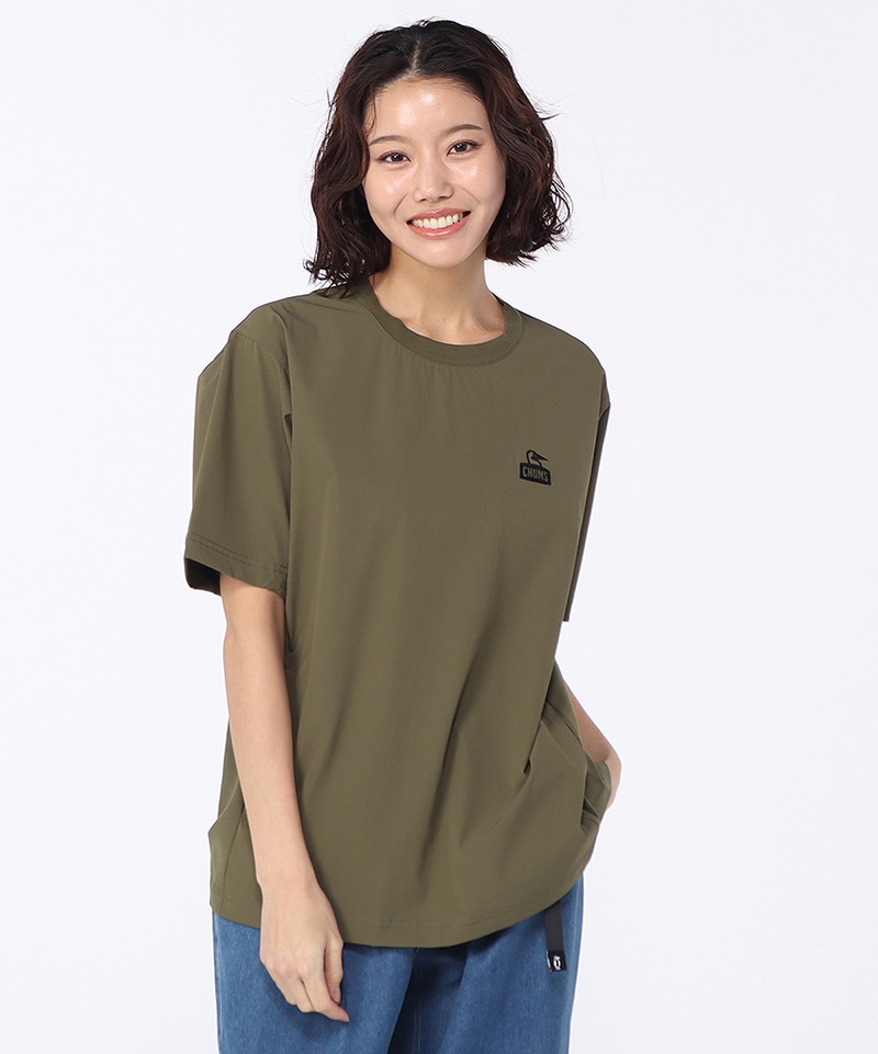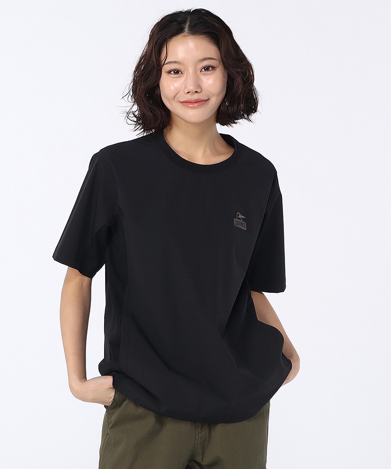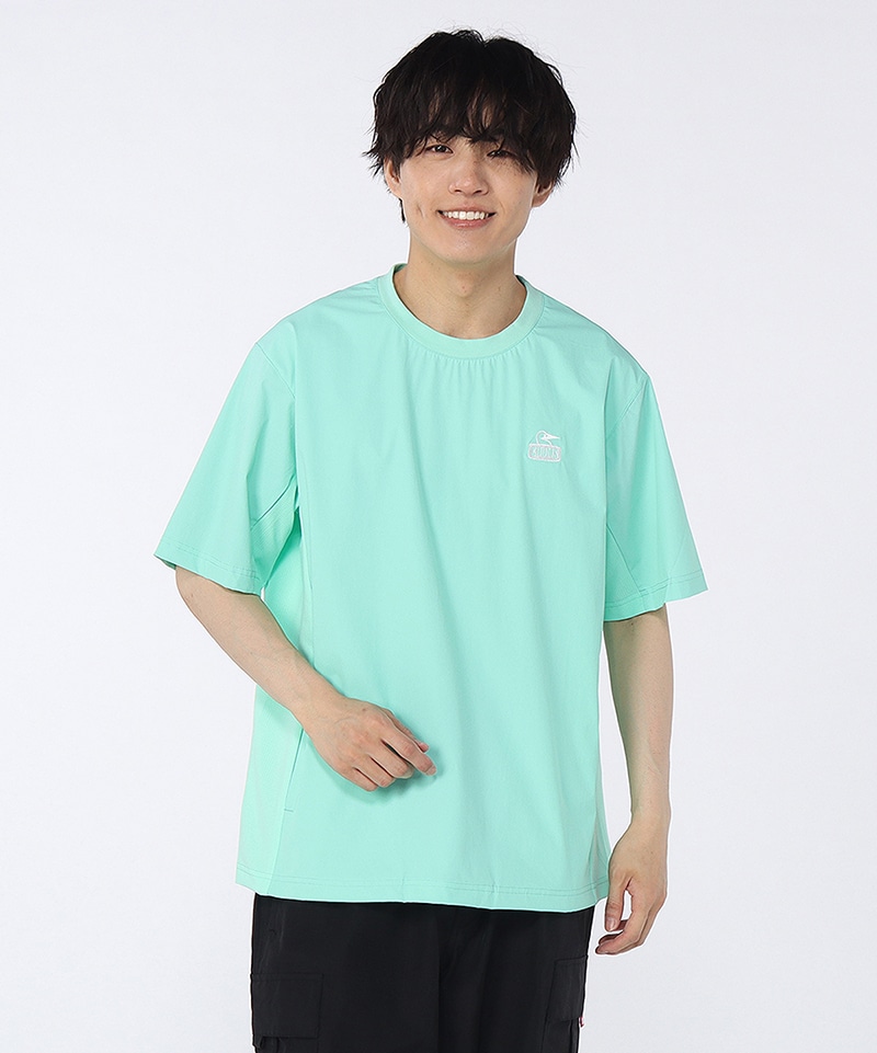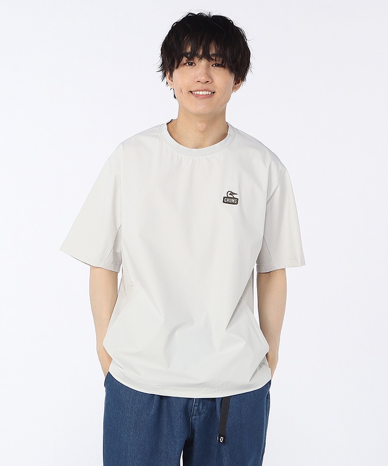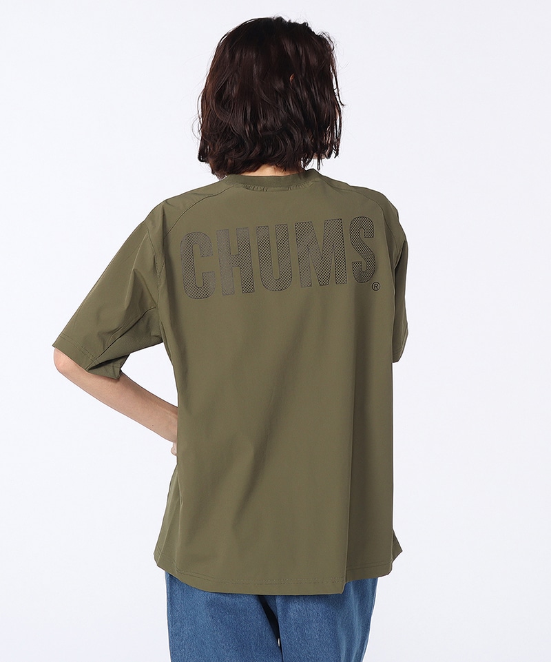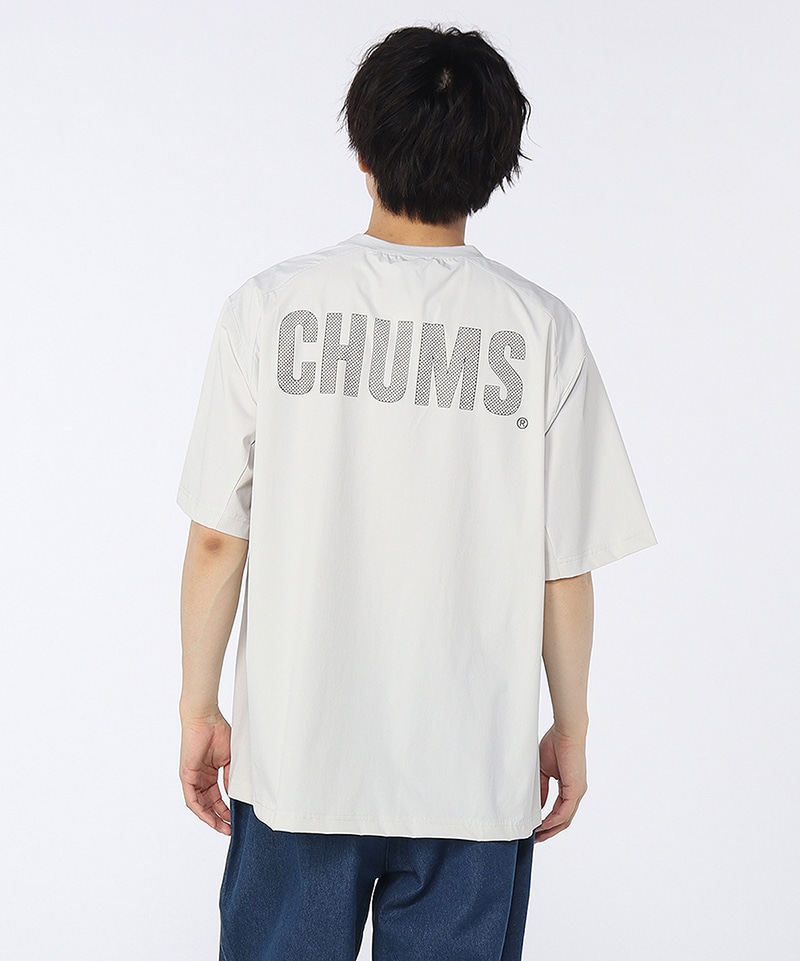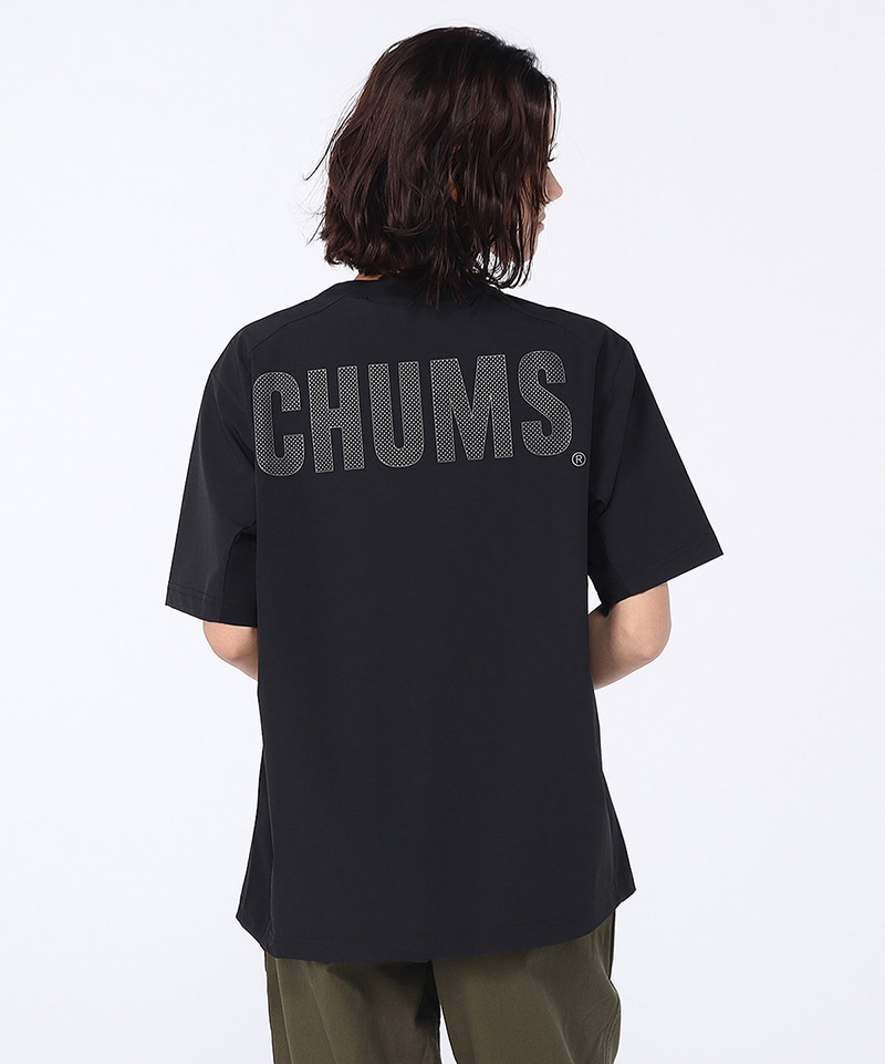 アウトドアからスポーツ、タウンユースまでマルチに使えるTシャツ。フロントにはブービーフェイスロゴをワンポイントで配し、背面にはドット調のCHUMSロゴをレイアウト。アクティブシーンにうれしい両サイドポケット付きで、デザイン性と利便性を兼ね備えた一枚です。