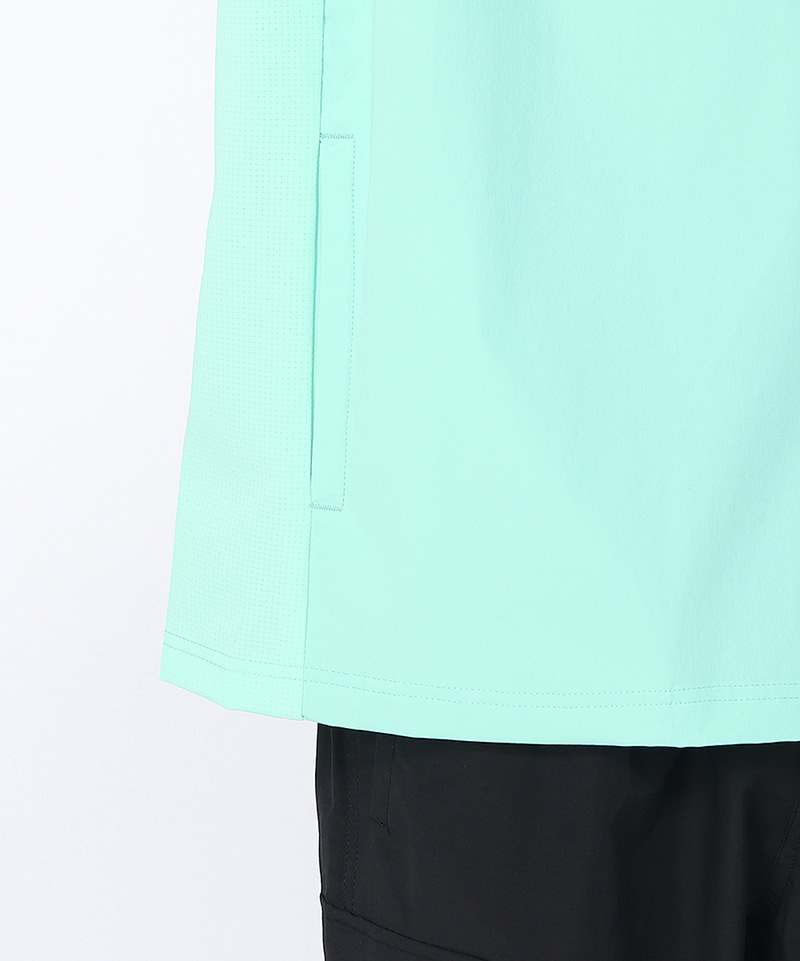 蒸れやすい脇周りには通気性の高いストレッチウーブンメッシュ素材を配置。さらに撥水加工により小雨程度なら安心して着用可能。機能性と軽快さを兼ね備えた、さまざまなシーンで頼れる一着です。