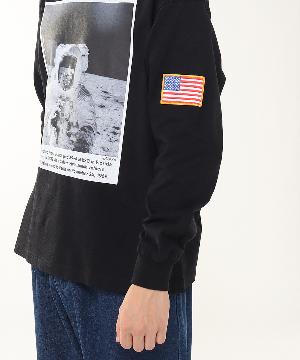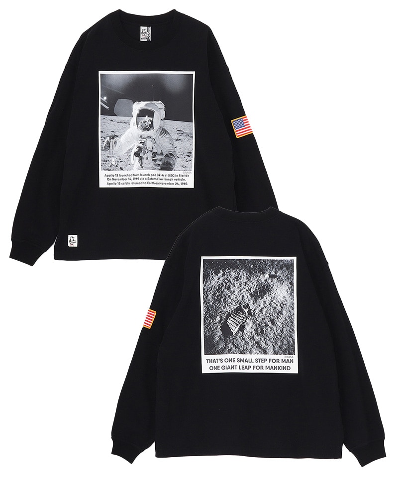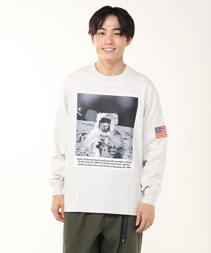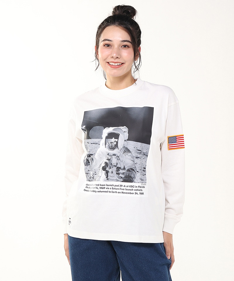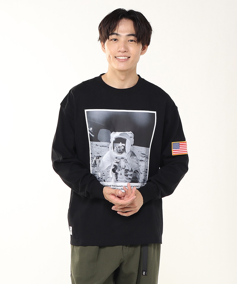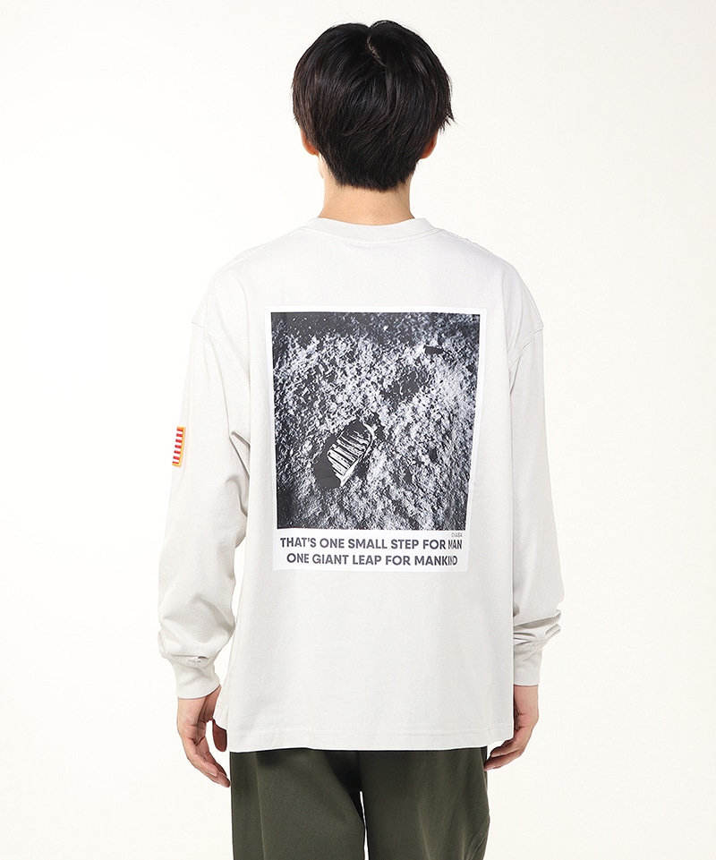 アポロ11号の月面着陸写真をあしらった、ロマンあふれるロングスリーブTシャツ