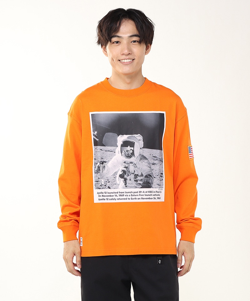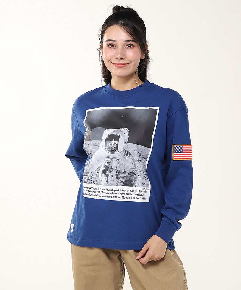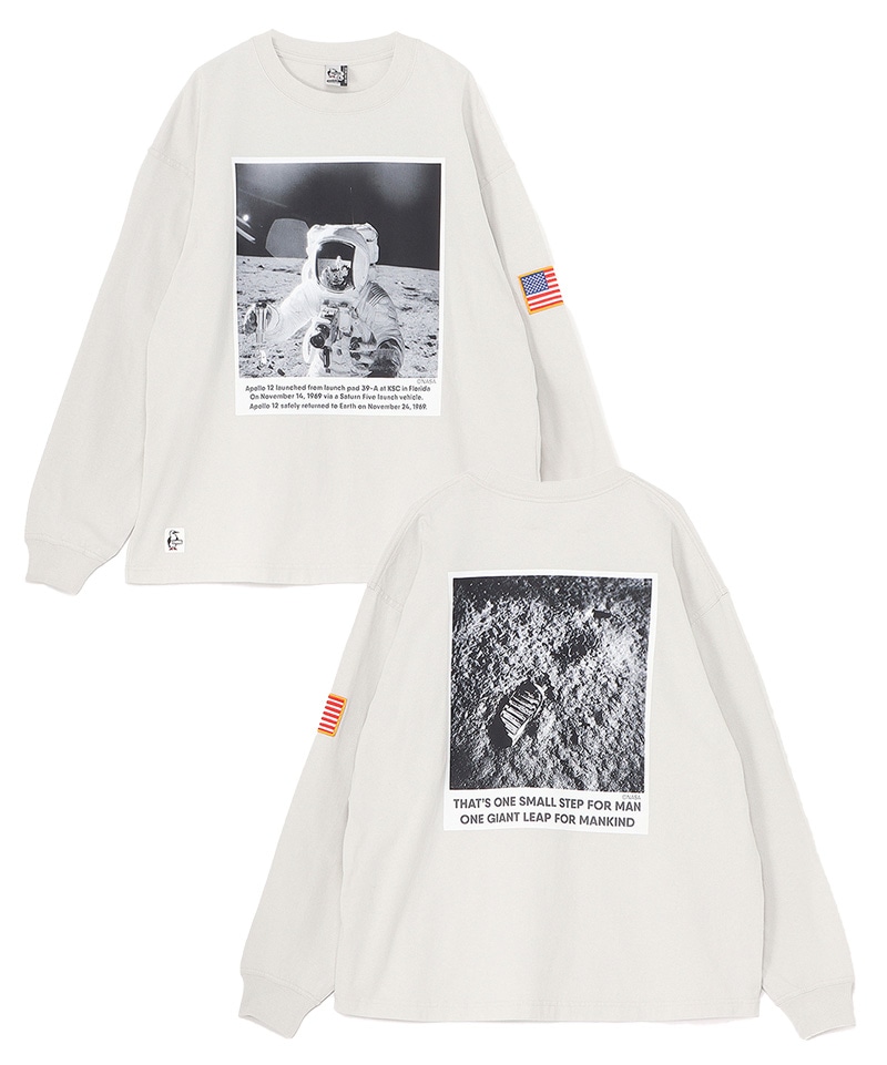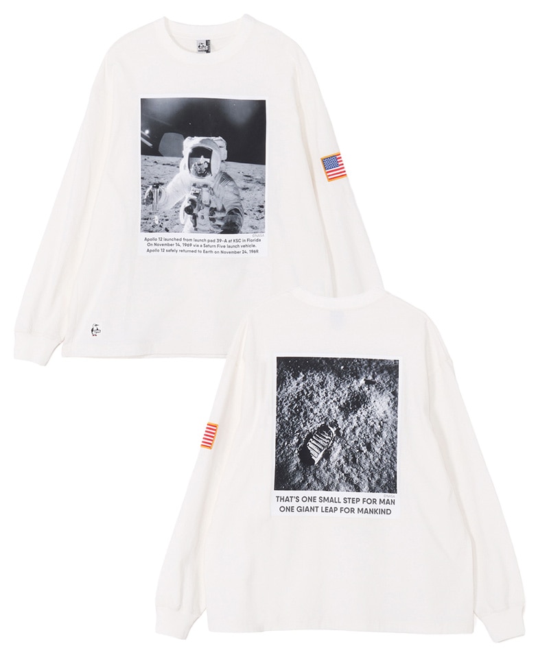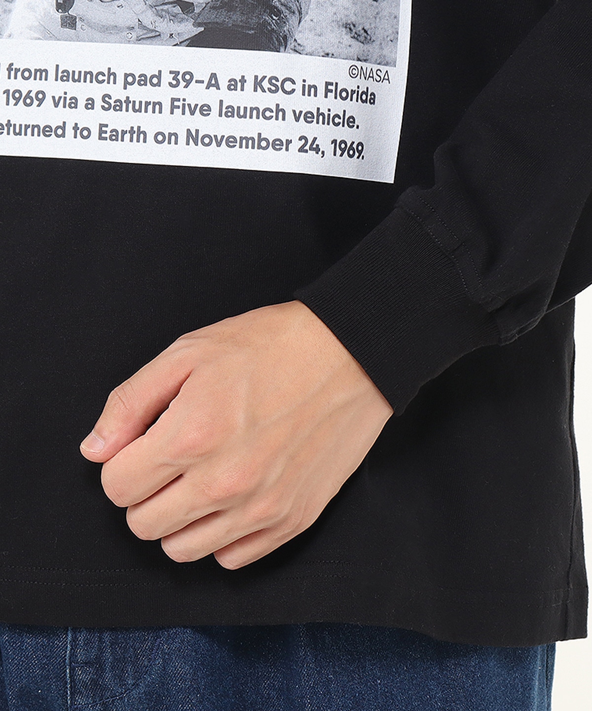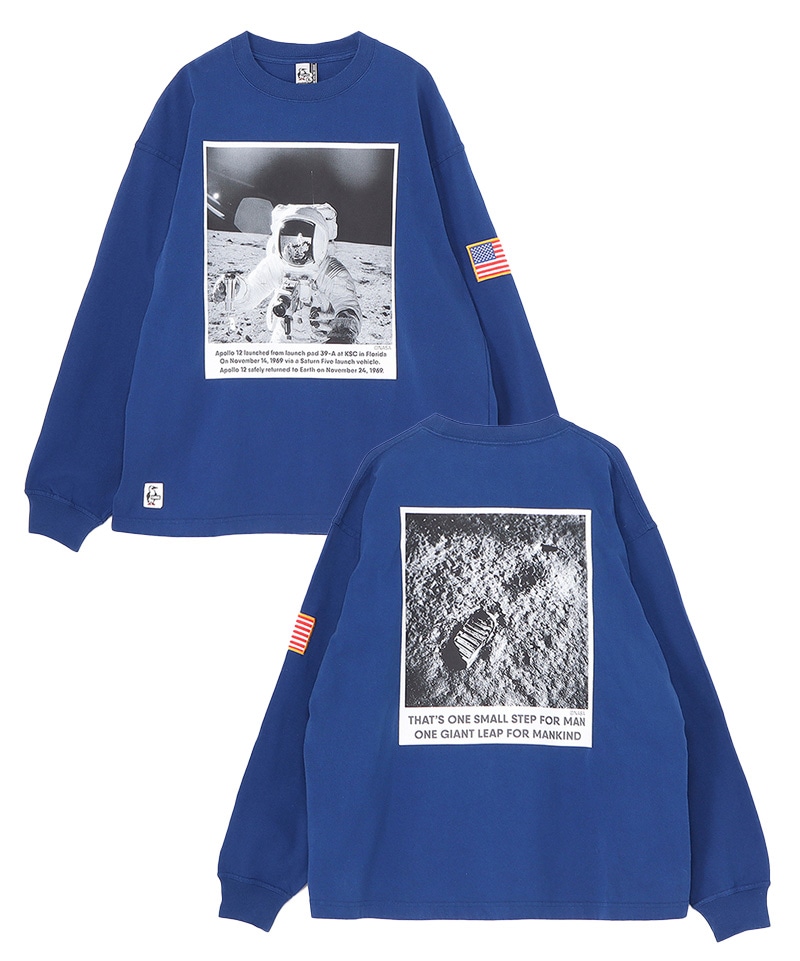 アポロ11号の月面着陸写真をあしらった、ロマンあふれるロングスリーブTシャツ