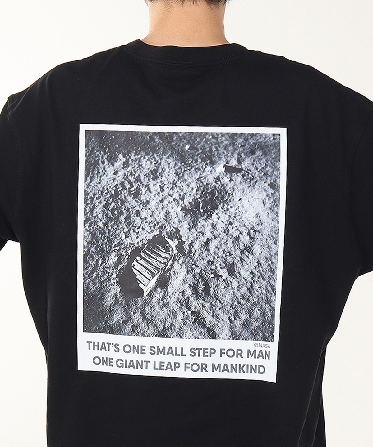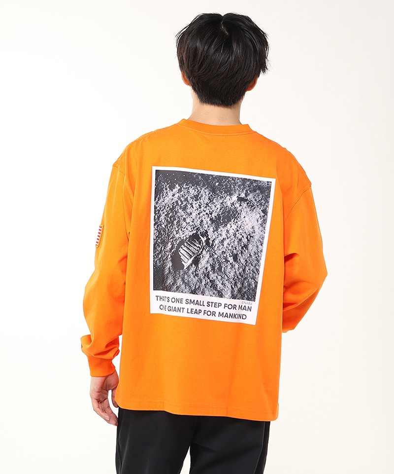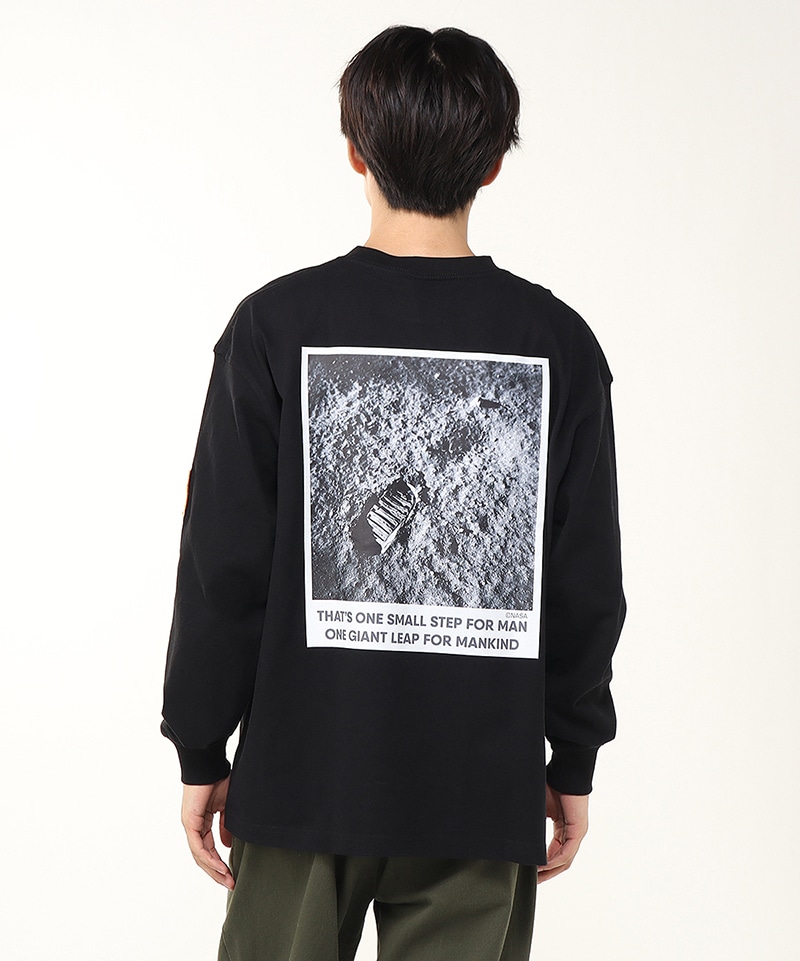 ゆったりとしたオーバーサイズシルエットのロングスリーブTシャツ。フロントには、アポロ11号の月面着陸時に撮影された実際の写真をレイアウト。背面には、「That's one small step for man, one giant leap for mankind(これは一人の人間にとっては小さな一歩だが、人類にとっては大きな飛躍である)」という有名な言葉とともに、月面に残された人類の足跡をデザインしました。