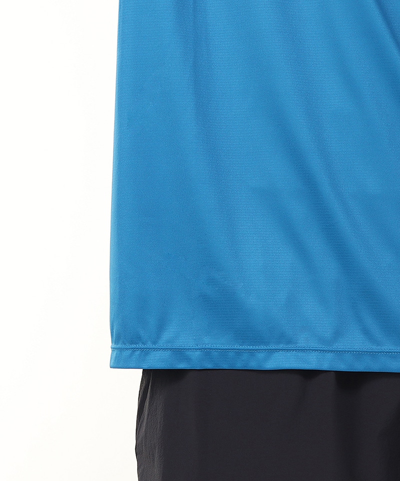 ポリエステル100%の吸水速乾素材を使用。汗を素早く吸収・拡散し、さらりとしたドライな着心地を保ちます。軽量で通気性にも優れており、ランニングなどのアクティブシーンに最適です。