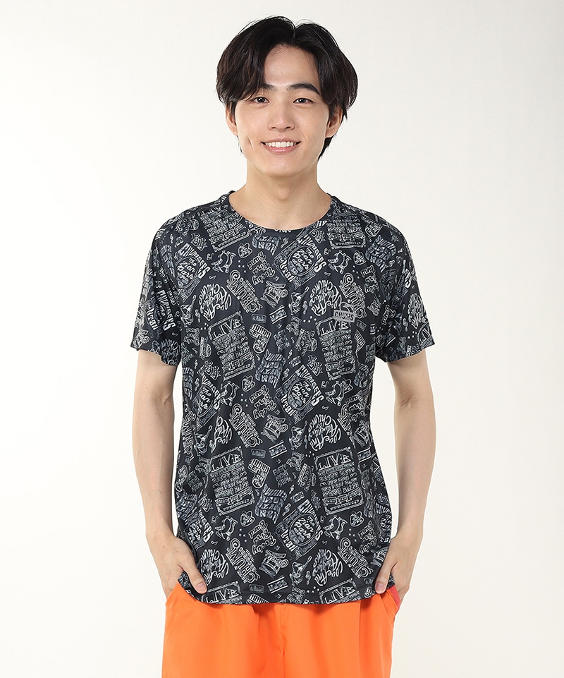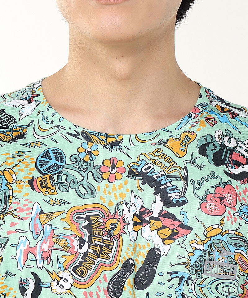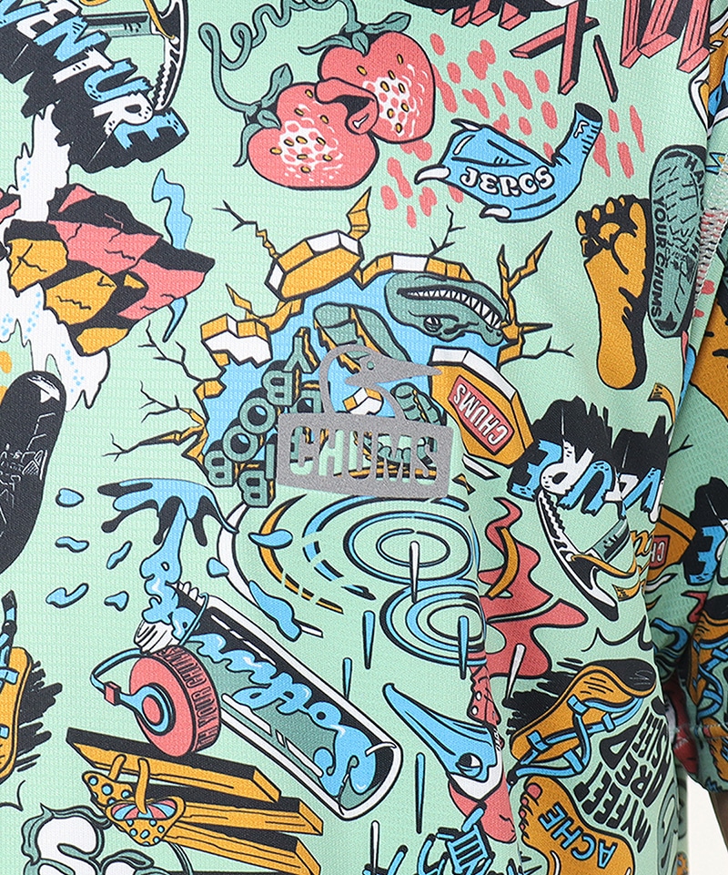 【CHUMSランニングシリーズ】インパクト抜群!シーズングラフィックをプリントした総柄Tシャツ