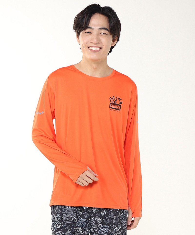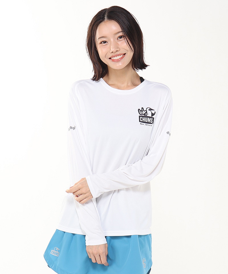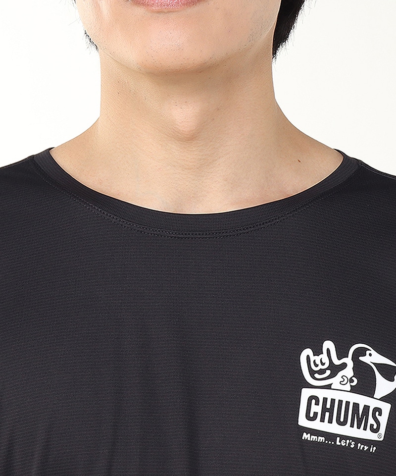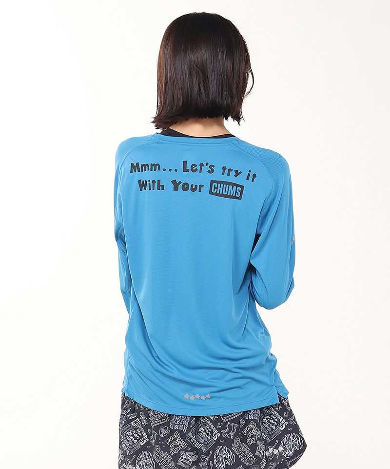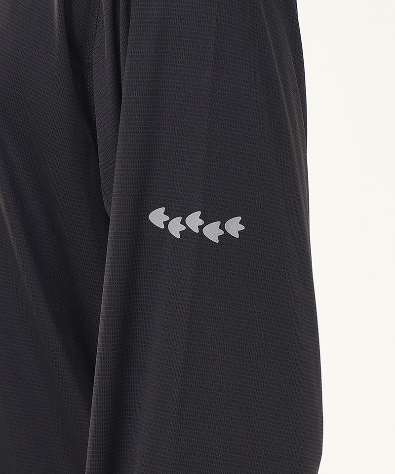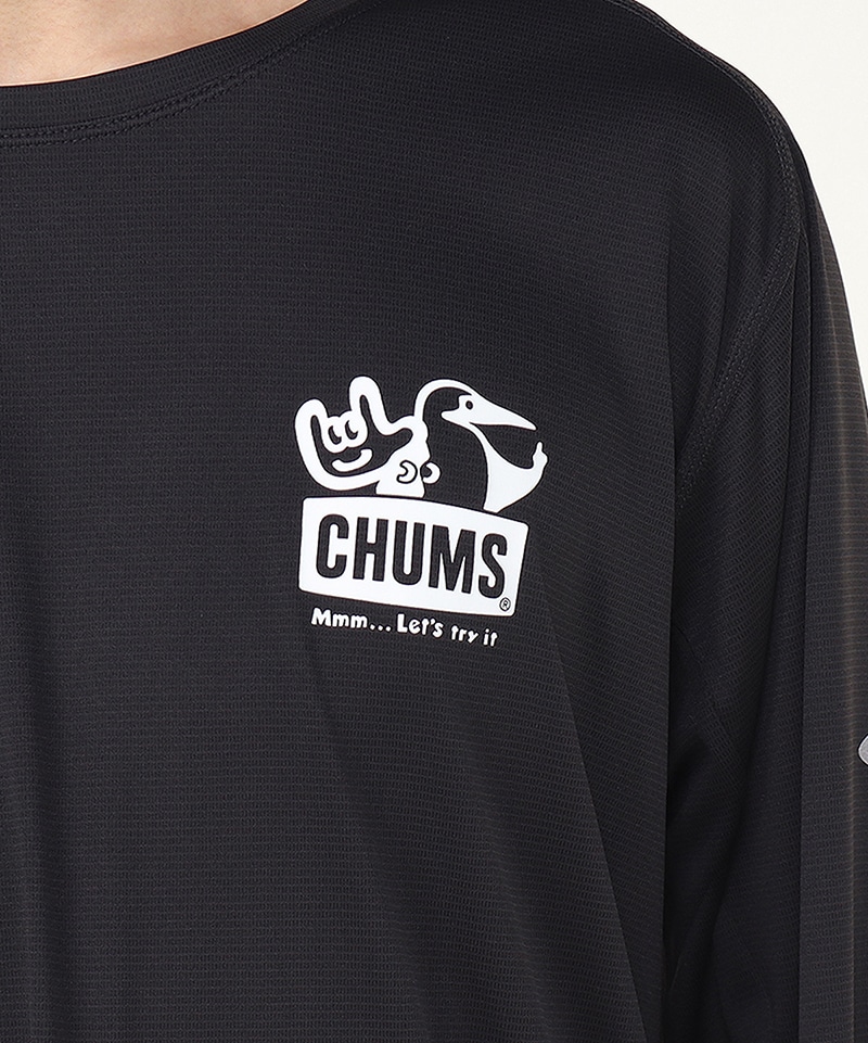 ランニングインフルエンサーの“三津家貴也氏”のアイコンとブービーバードを組み合わせたデザインを左胸に配置。バックプリントには同氏の代名詞「ん~、やってみよう!」と、CHUMSの合言葉をかけ合わせた「Mmm...Let's try it with your CHUMS!」の文字をリフレクタープリントで施し、夜間の視認性も確保しています。袖と後ろ身頃にもリフレクタープリントをあしらい、ランニング中の安全性に配慮しています。