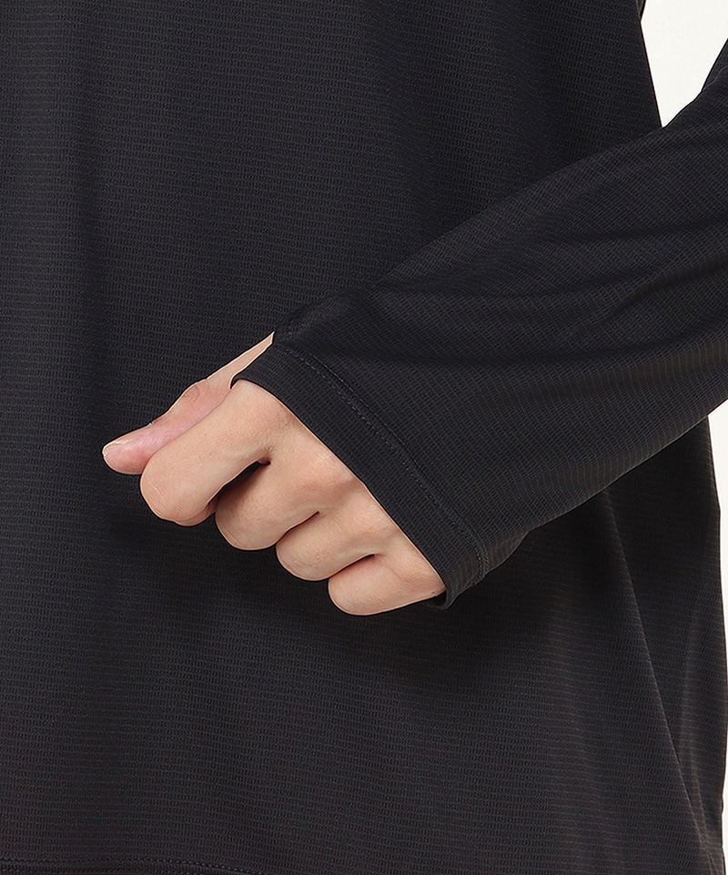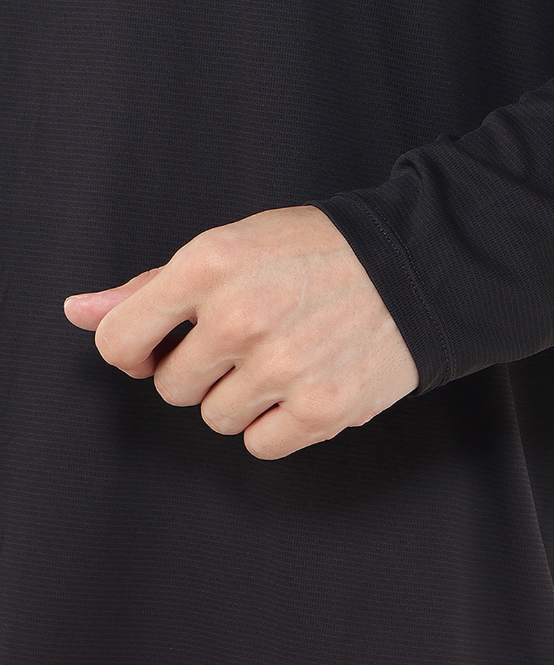 ・袖先にサムホール付きで、肌寒い時期でも手の甲までカバー