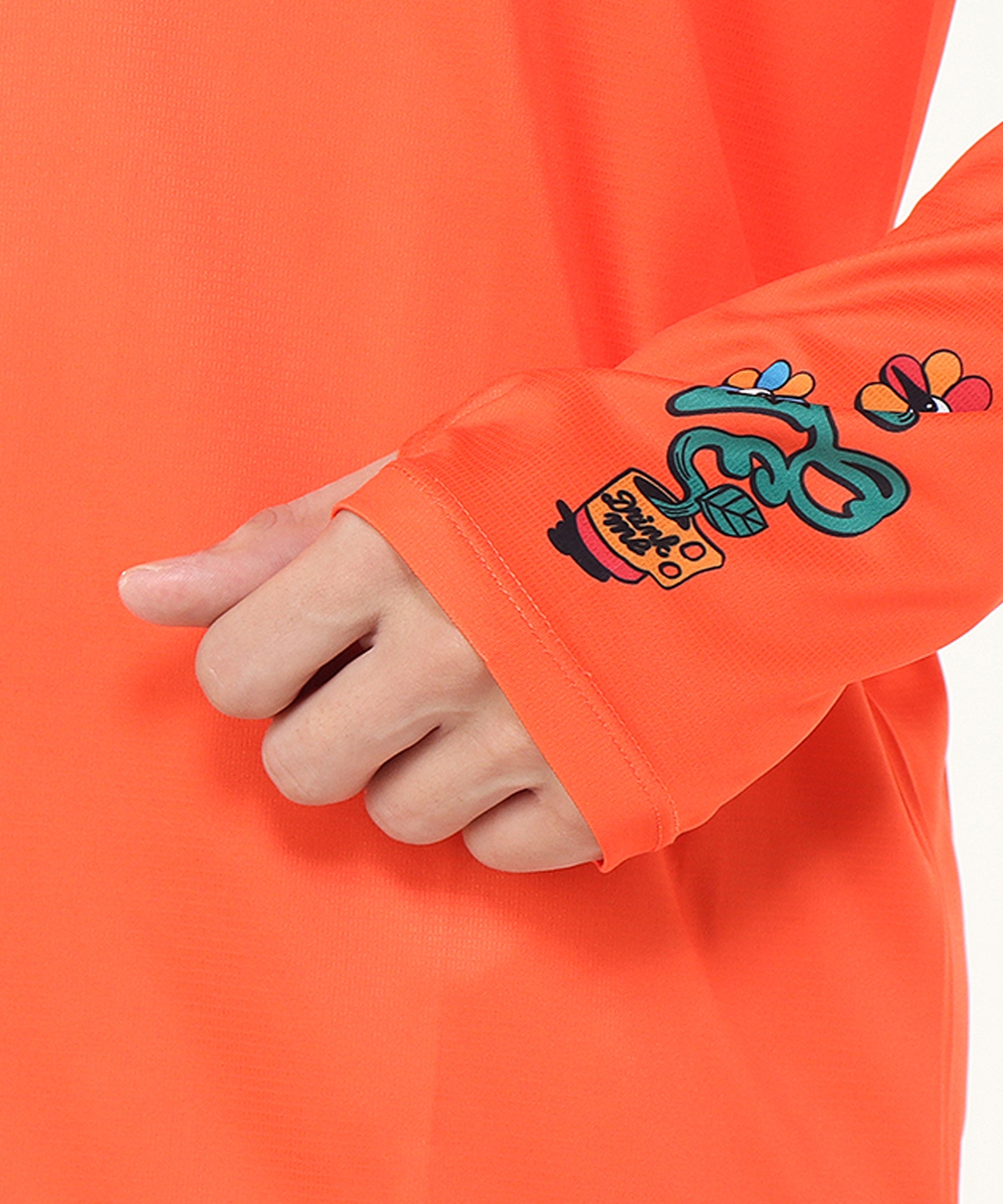 ・袖先にサムホール付きで、肌寒い時期でも手の甲までカバー