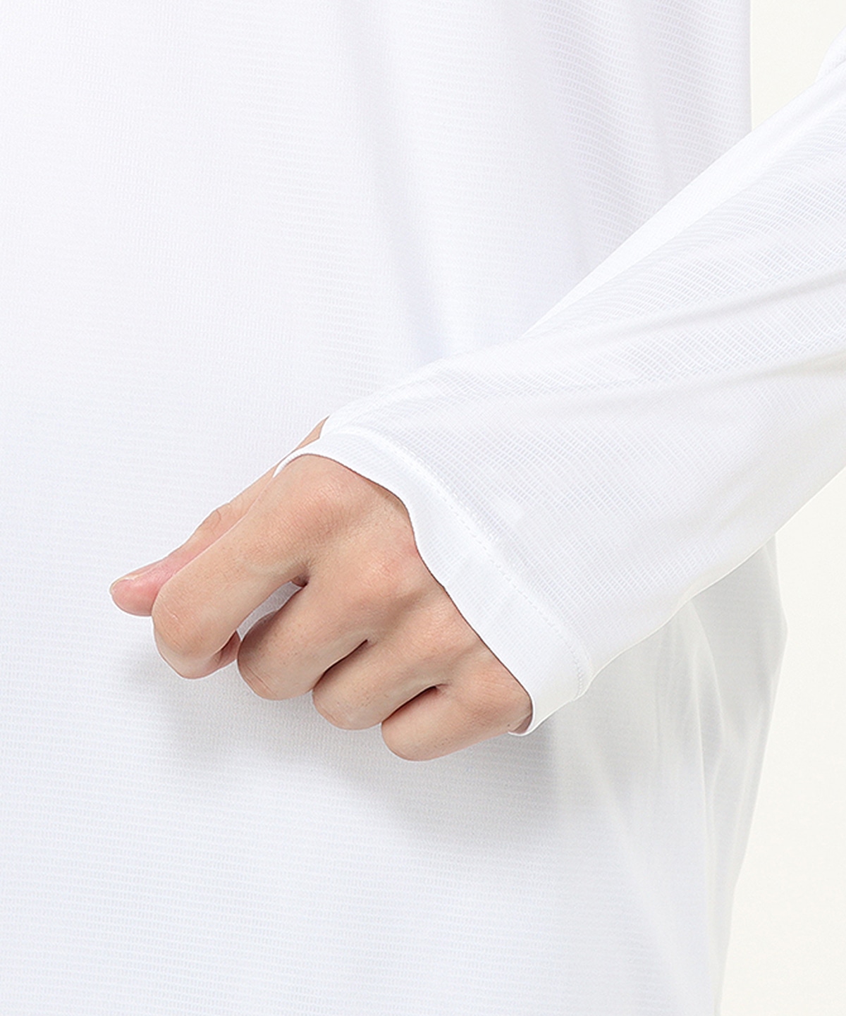 ・袖先にサムホール付きで、肌寒い時期でも手の甲までカバー