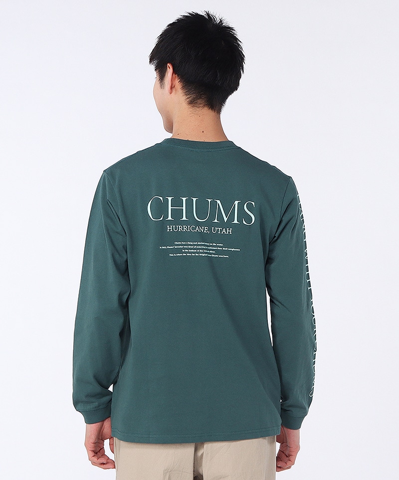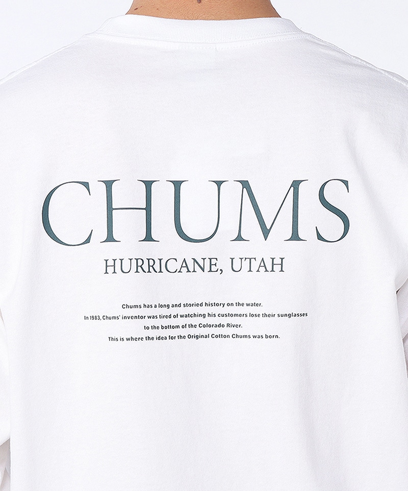 バックにはクラシックなタイポグラフィを採用し、袖にはCHUMSの合言葉「HANG WITH YOUR CHUMS」をプリント。シンプルな中にも、CHUMSらしいあそびゴコロを感じられるデザインに仕上げました。