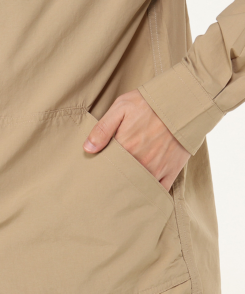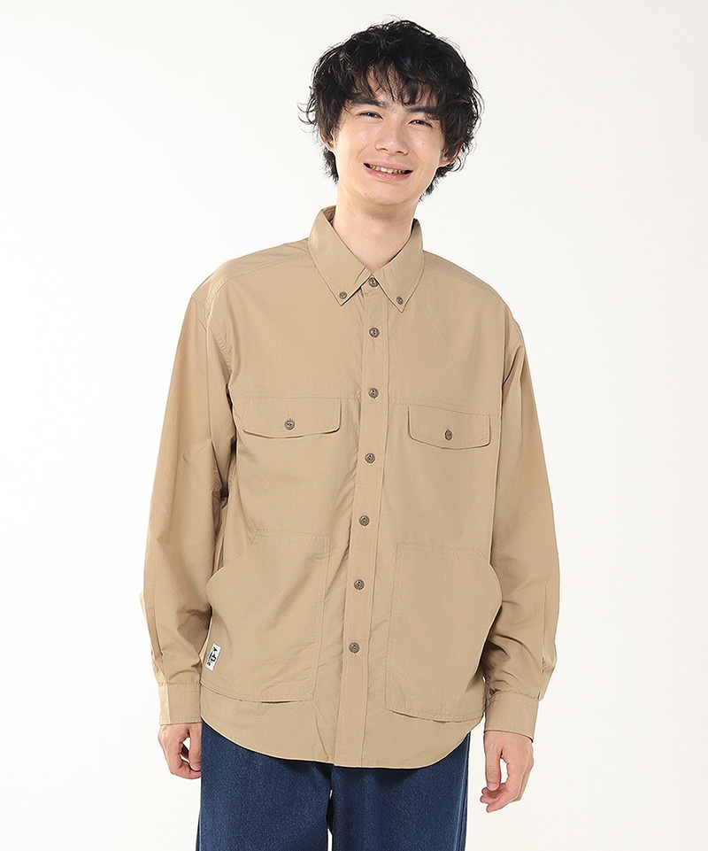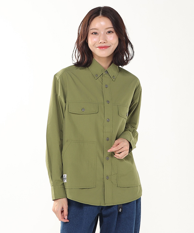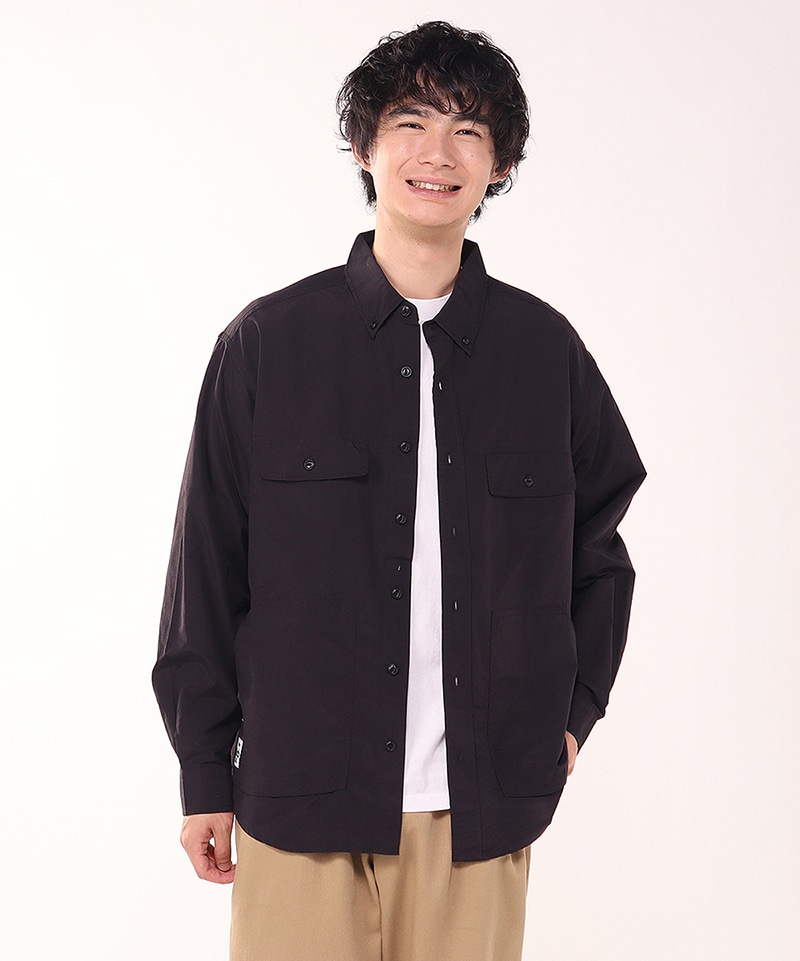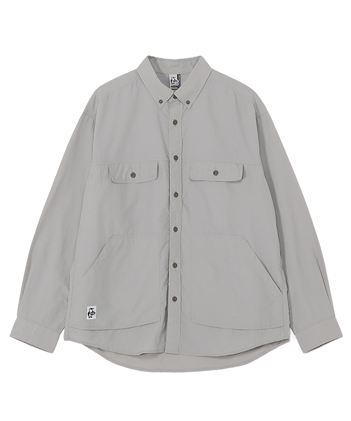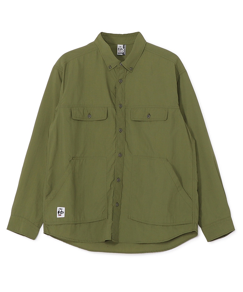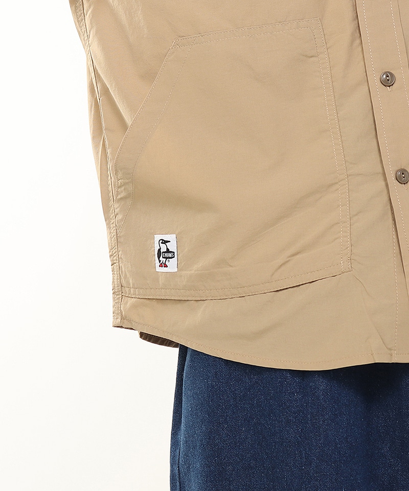 CHUMS定番のCamp Field Hoodieと同じナイロン素材を用いたロングスリーブシャツ。ゆったりとしたオーバーサイズシルエットで、一枚着としても、羽織りとしても頼れる使い勝手の良さが魅力。胸にダブルポケット、腰に大きめのパッチポケットを配して収納力を持たせました。