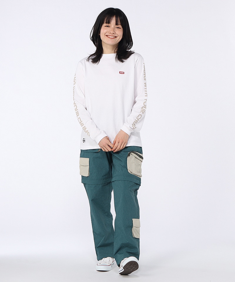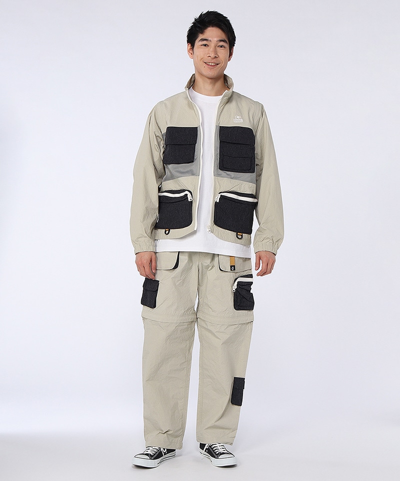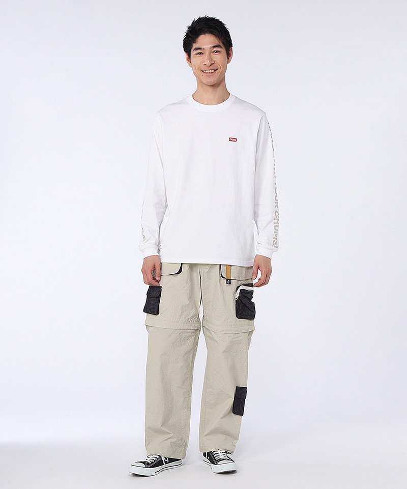 豊富なポケットが目を引く、機能性とあそびゴコロを両立したロングパンツ。膝下が取り外せるコンバーチブル仕様で、気温の高い時期は膝下を外してショーツとして活躍します。ファスナーやベルトにはカラフルな配色を採用し、CHUMSらしいポップなアクセントをプラスしました。