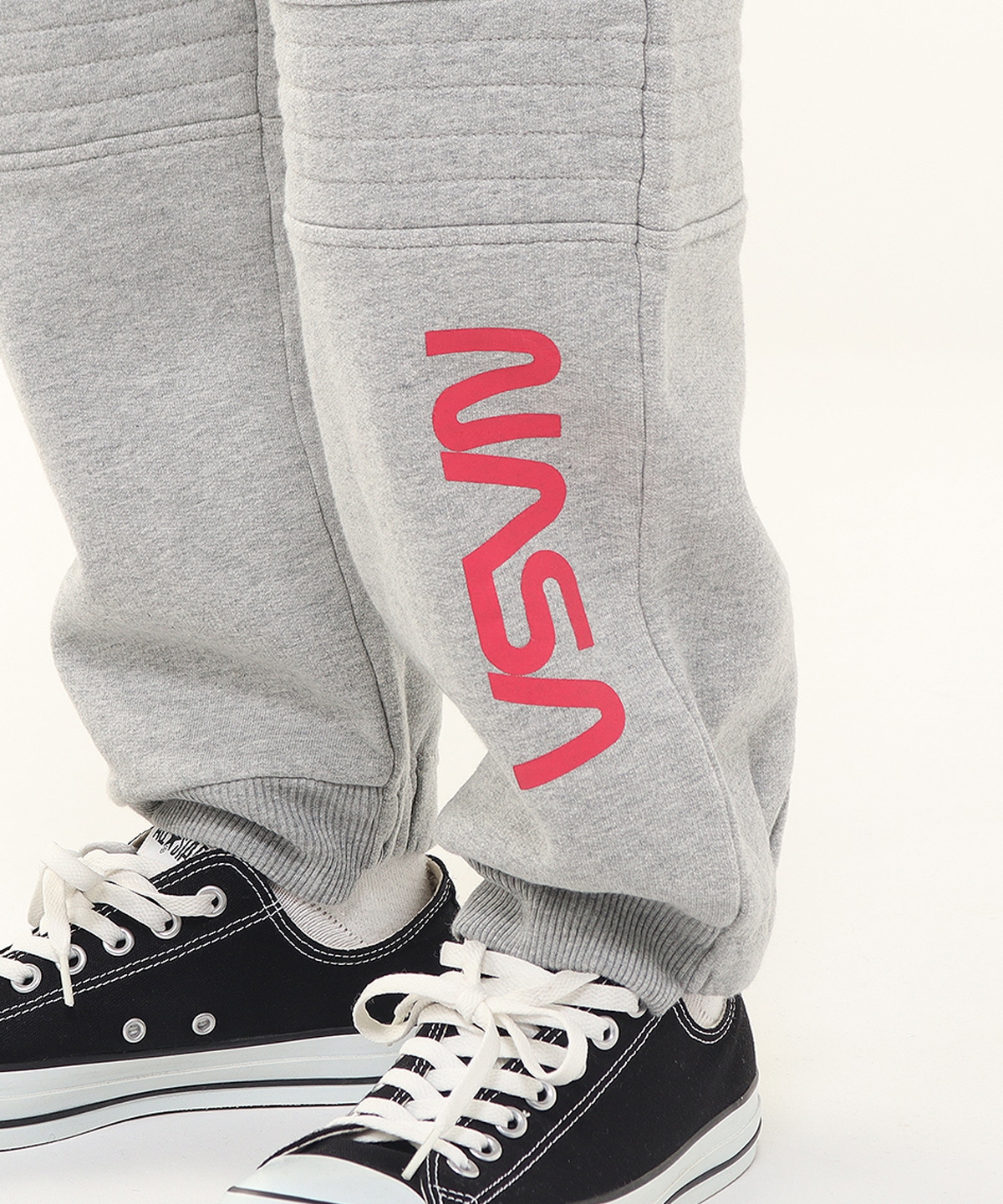 さらに、膝や腿部分には補強ステッチを施し、宇宙服のタック構造を表現。裾は前面をリブ、背面をゴム仕様にすることで、かかとを踏みにくく、実用性にも配慮しています。