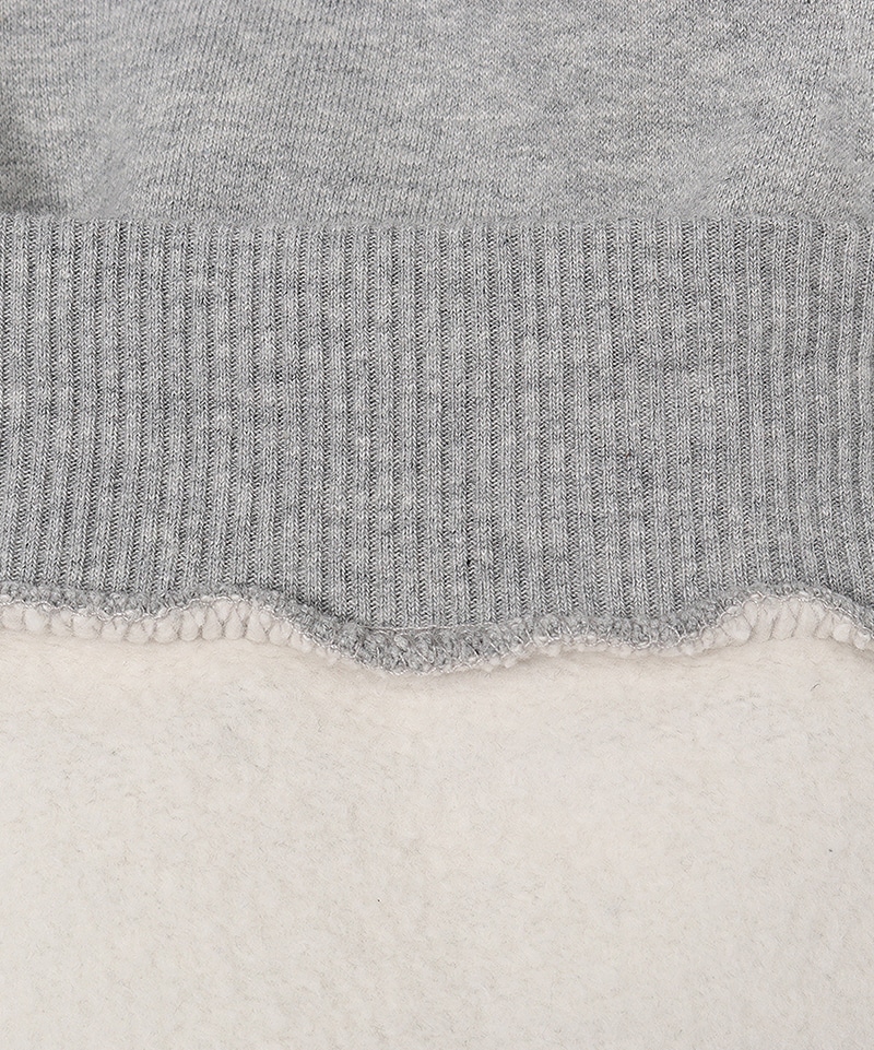 USAコットン100%仕立ての裏起毛スウェットシリーズ。インレイ編みという中糸のない編み技法を使用し、へたりにくく、しっかりした生地感が特徴的。今季では糸の番手や加工などを調整し、より柔らかく伸び感のある生地にリニューアルしました。