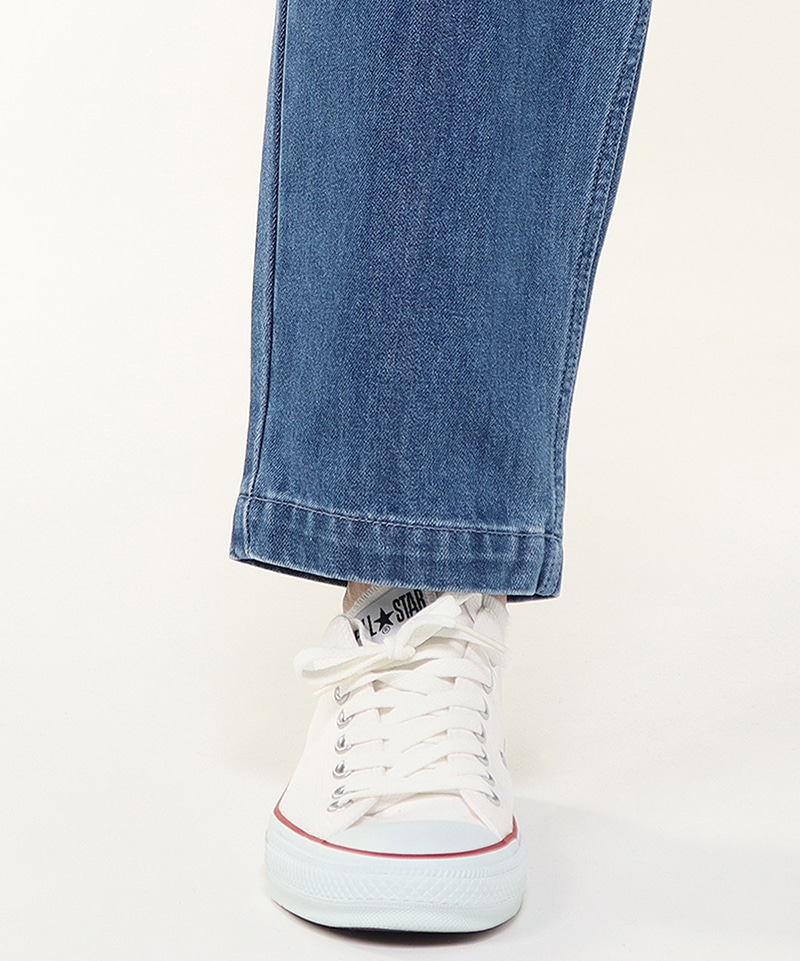 寒い季節でも快適に過ごせるウォームデニムを使用。糸に火山岩由来の鉱物(マグネシウム等)を練りこむことで、太陽光や体内から放出された熱を取り込み発熱を促します。また、繊維内のエアポケットが温まった空気を取り込むことで保温状態が持続します。